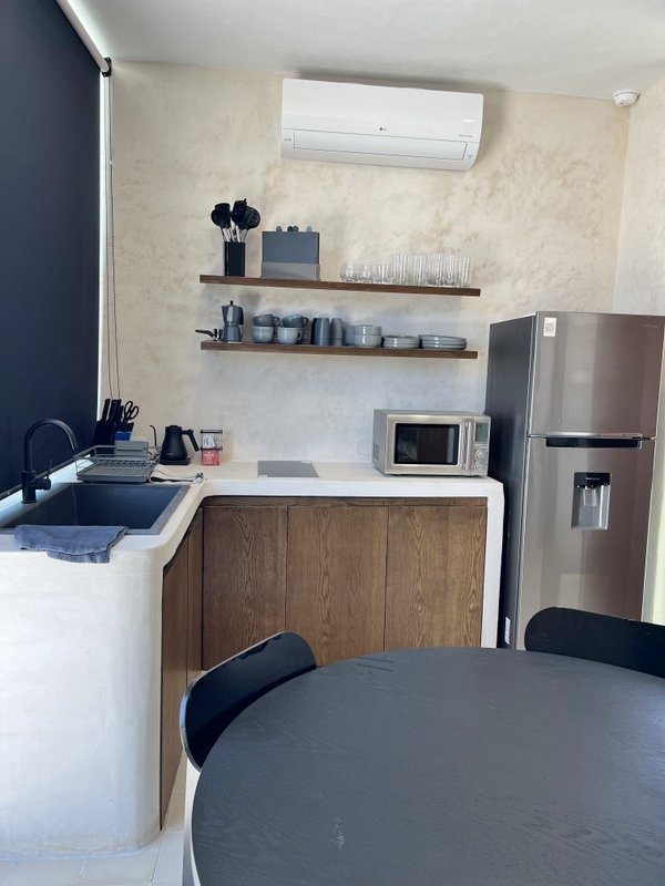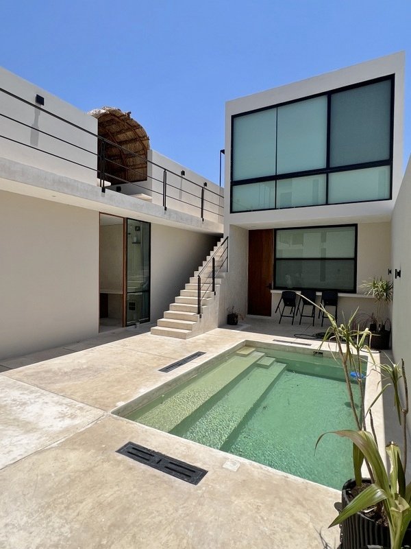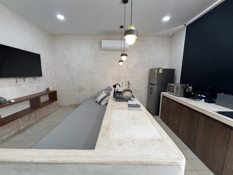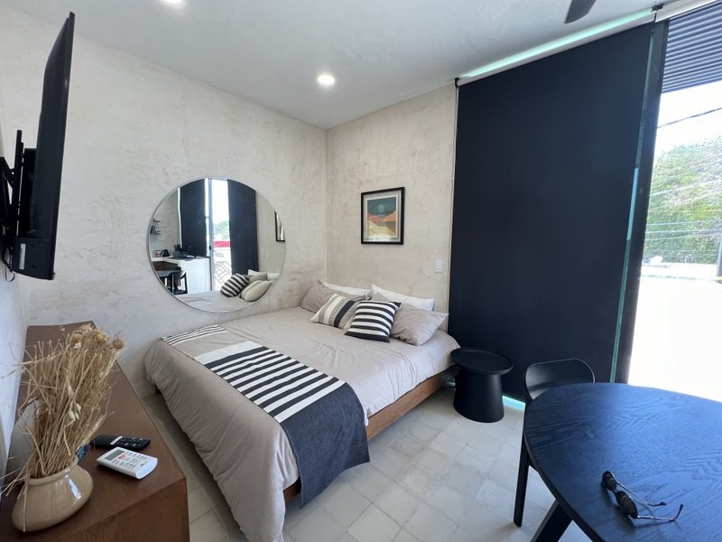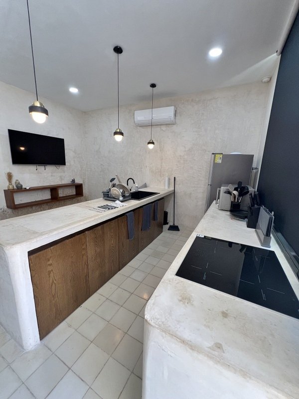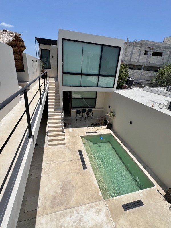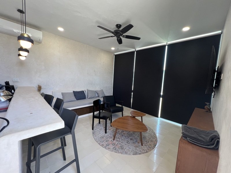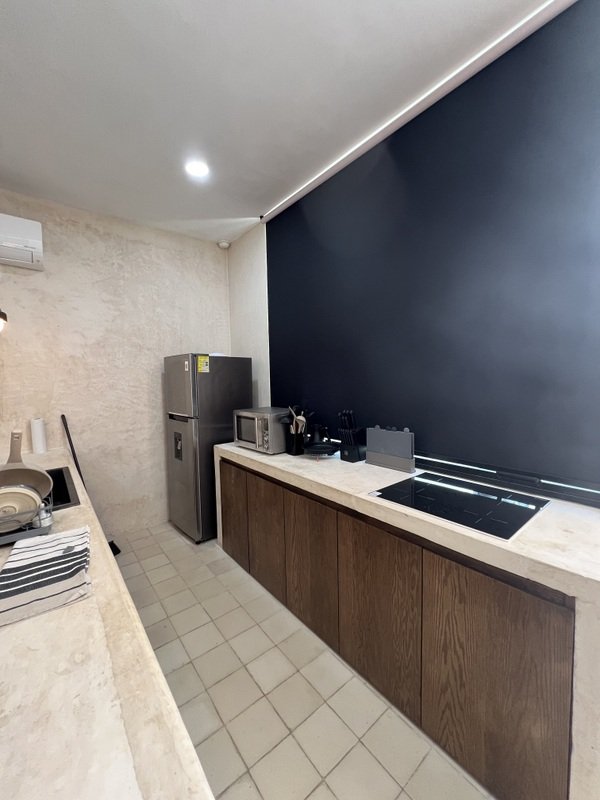 This beautiful property offers many options. The street front unit could be used as a business or studio apartment. There are two one bedroom apartments and a studio apartment with a large terrace. The entire building has been built to high standards. All units have chukum walls with matching pasta tile floors. Light fixtures are black and in modern design. Each unit comes fully furnished and equipped . A king sized bed with all linens, refrigerator and all kitchenware, towels , sofa cushions and decorative pillows , chairs, a large screen television , air conditioners and decorative mirrors are included. Floor to ceiling windows throughout all have shades to provide privacy yet allow natural light. LG washer and dryer are also on site. Other features are a filtered pool , cozy sitting area overlooking the pool and an office space. All units are well organized providing ample space for living and storage space. The showers have a rain shower head. Kitchens have oversized sinks and induction cooktops. The kitchen island provides seating for dining. The overall feel of these homes is of elegance and luxury. Bus service is just a few houses away on the side street. Simply 15 minutes to walk downtown or La Planche and the food corridor.