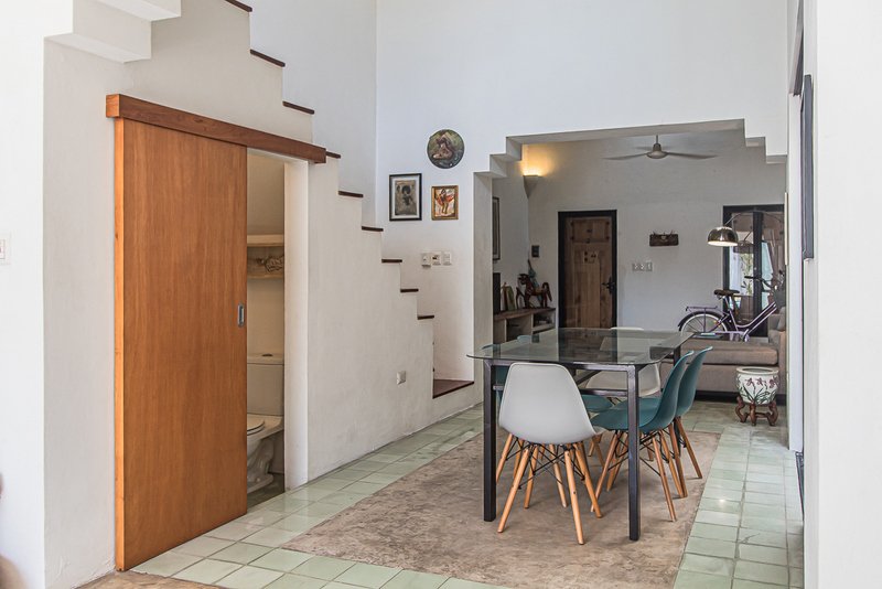 With an open concept design and inviting ambiance, this home welcomes with a colonial beamed high ceiling living room, dining room, equipped kitchen, guest bath and indoor garden that brings nature and breeze to the house.