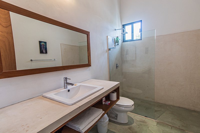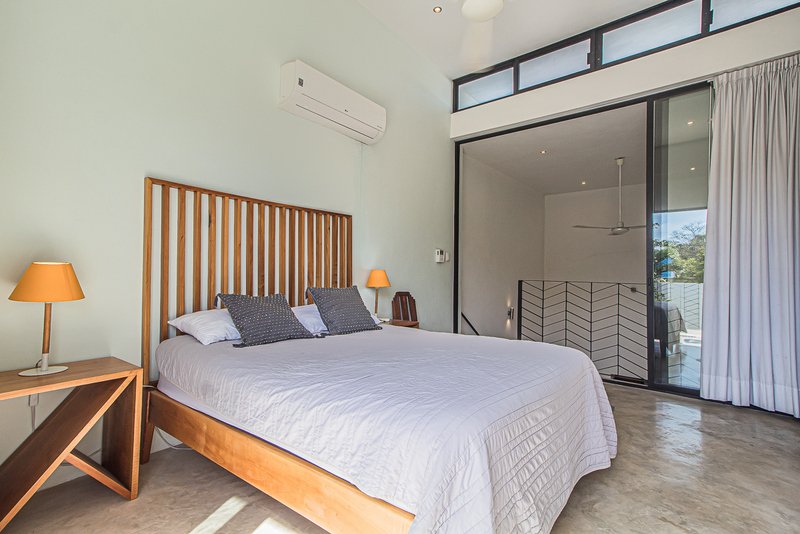 Casa Las Amigas accommodates two generously sized bedrooms, ensuring privacy and comfort to the homeowners. The ground floor hosts a master suite with built-in closet, full bath, and a private landscaped garden, promising a peaceful retreat.