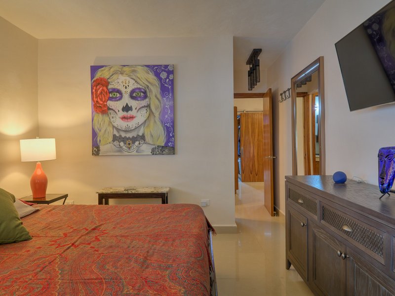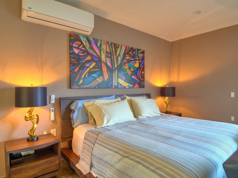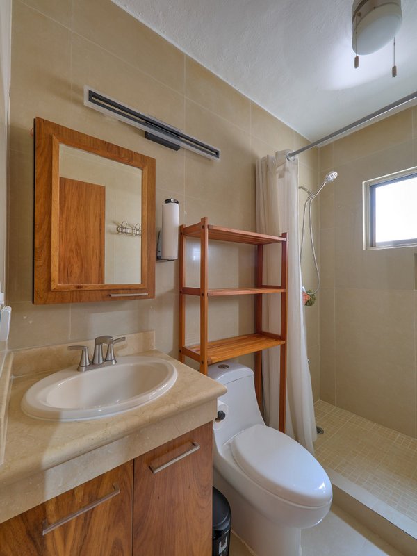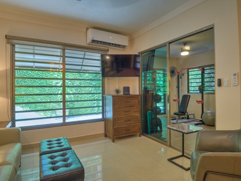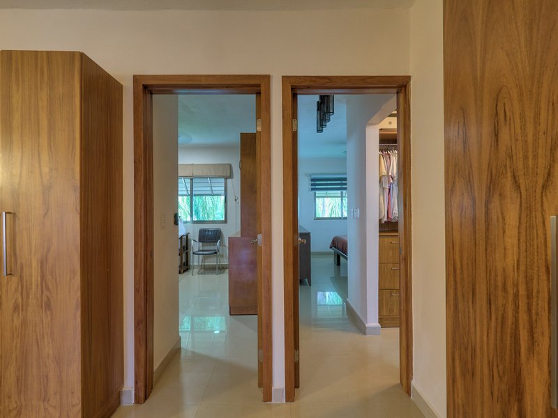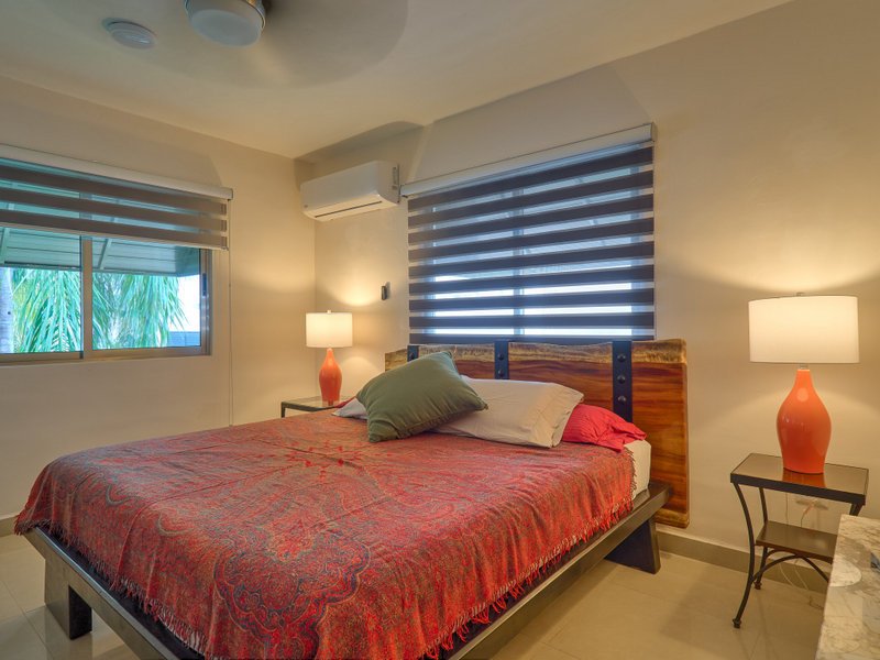 • Second guest bedroom with Tzalam custom wood closet, ceiling fan & AC 18 BTU, access to bathroom with modern lighting & dimmer switch.
