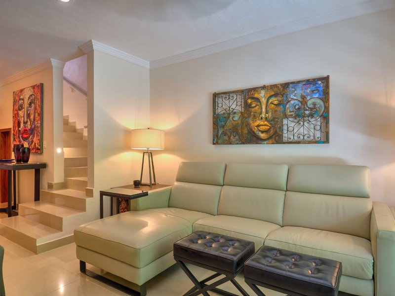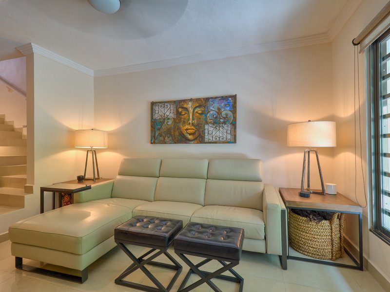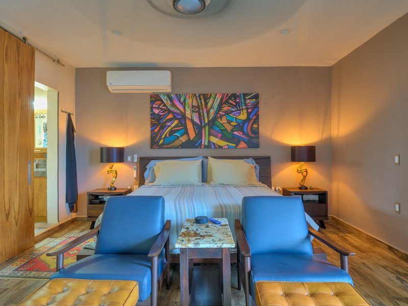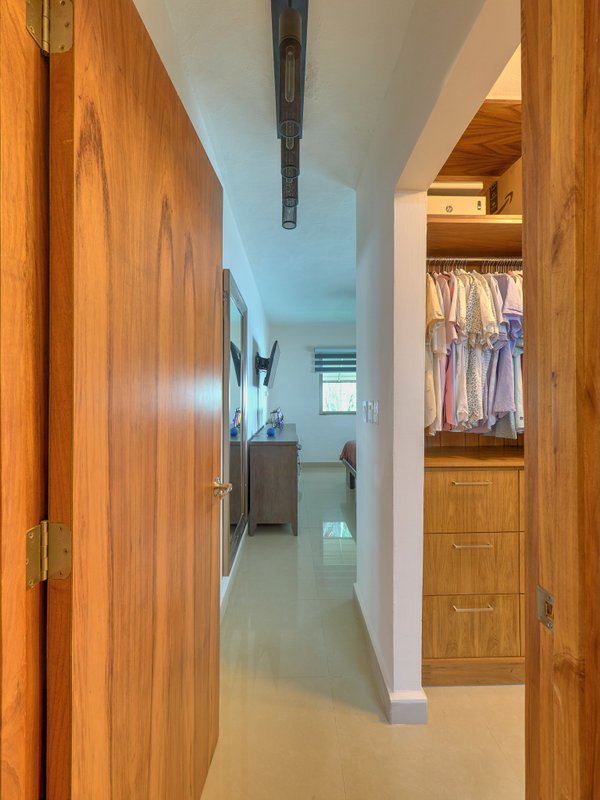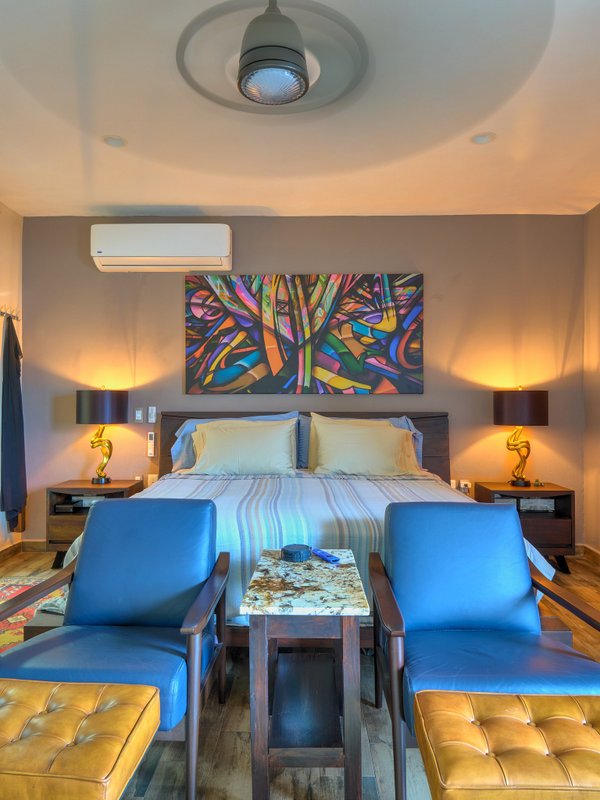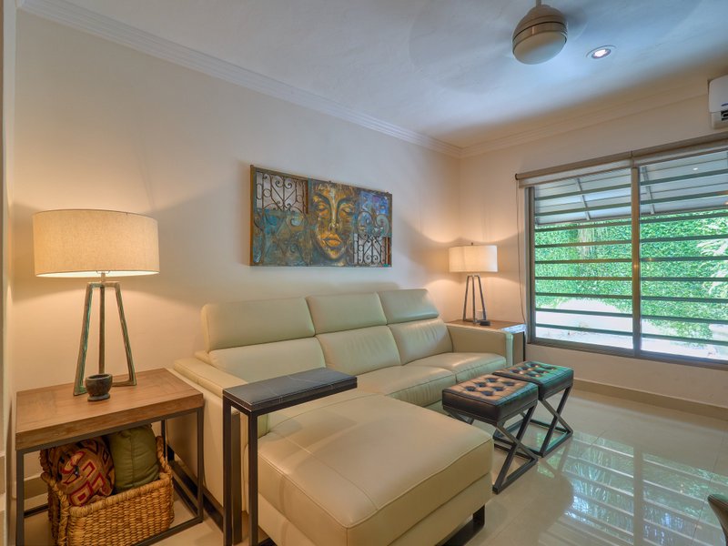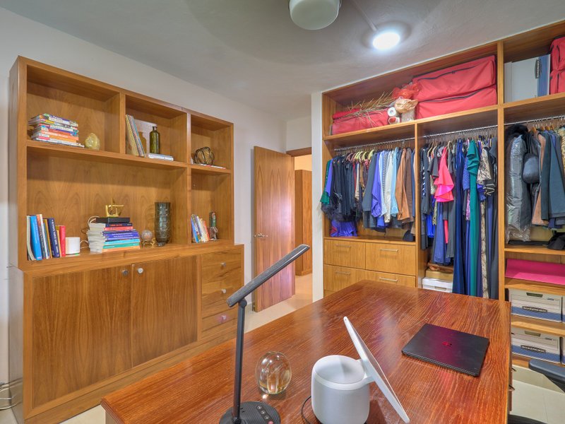 • Second guest bedroom with Tzalam custom wood closet, ceiling fan & AC 18 BTU, access to bathroom with modern lighting & dimmer switch.
