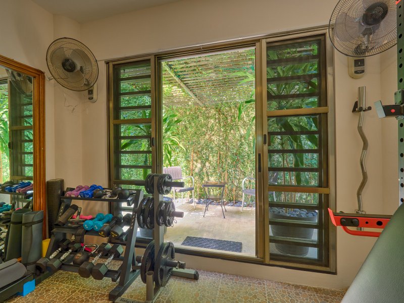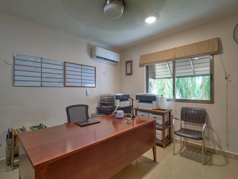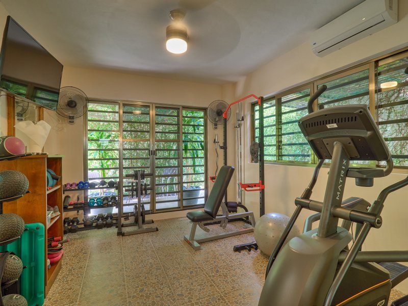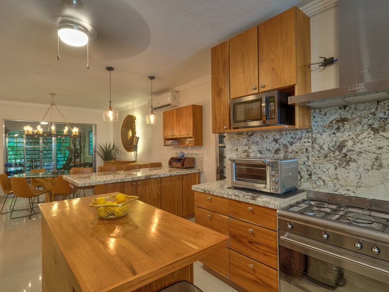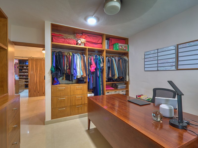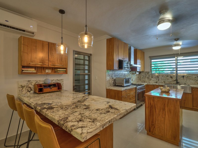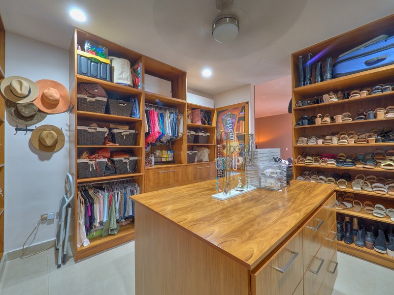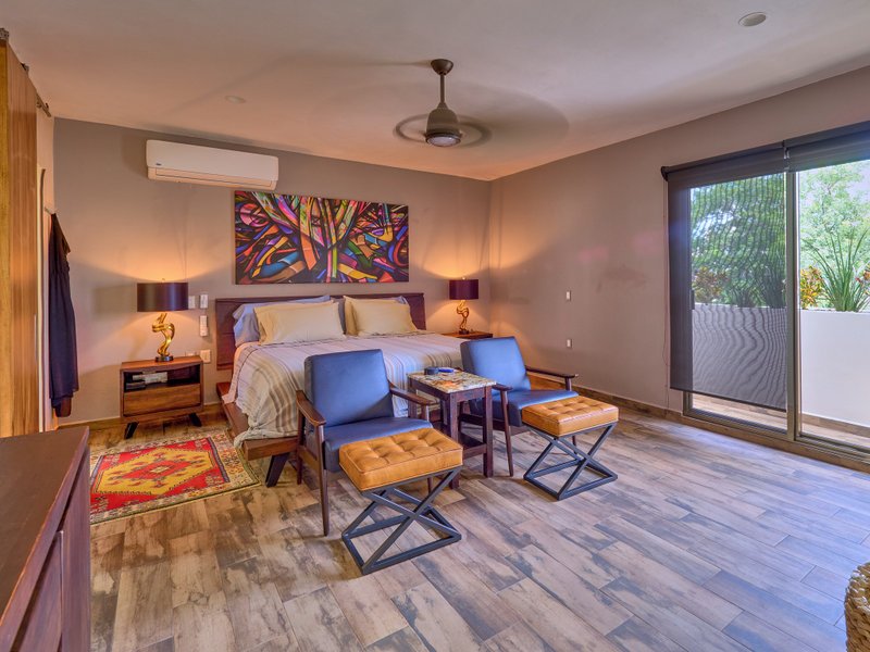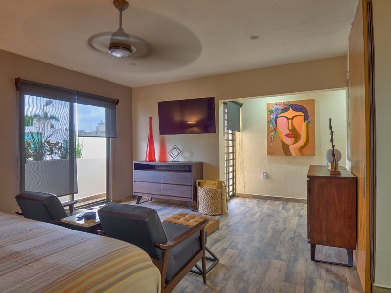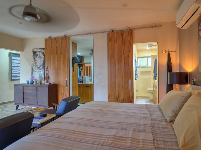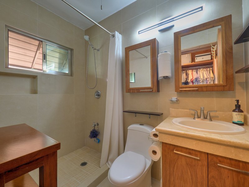 • Guest bedroom with ceiling fan & AC 18 BTU & ensuite bathroom, Tzalam wood closet with 2 ceiling fans, full bathroom with ceiling fan, modern lighting & dimmer switch.