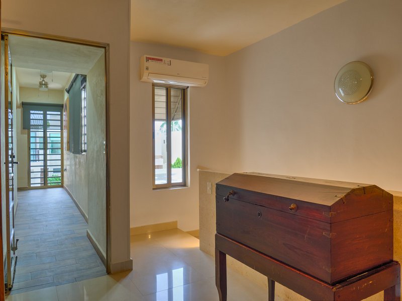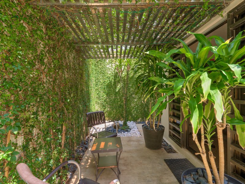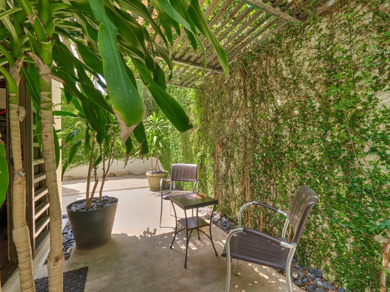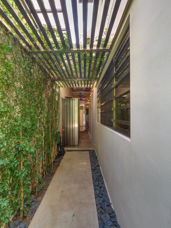 • Large Master bedroom, with Chukum accent walls, AC 24 BTU, Minka-Aire 65-inch ceiling fan, balcony with garden, with water access for watering plants, extended private hallway w/ 2 ceiling fans.