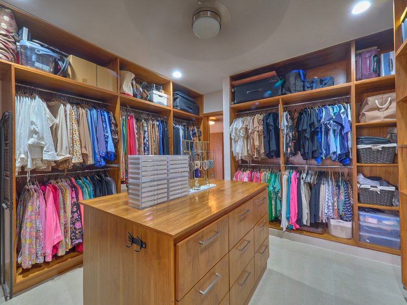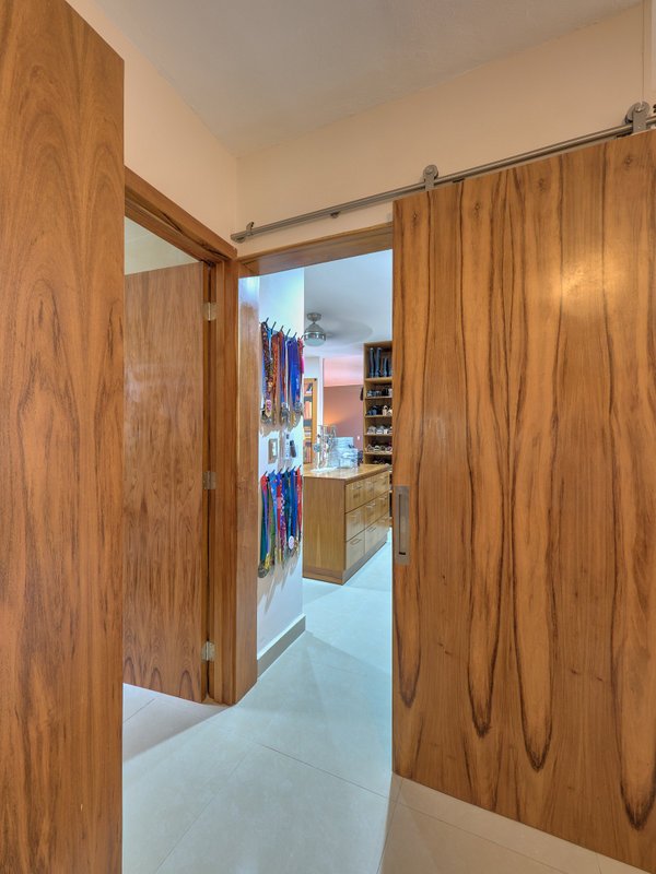 • Huge Master bedroom closet with custom woodwork, center island with drawers, massive amounts of storage, 2 entry & exits, sliding “Barn” doors with mirrors on each door, AC 18 BTU & ceiling fan