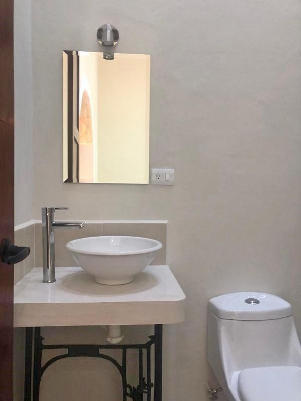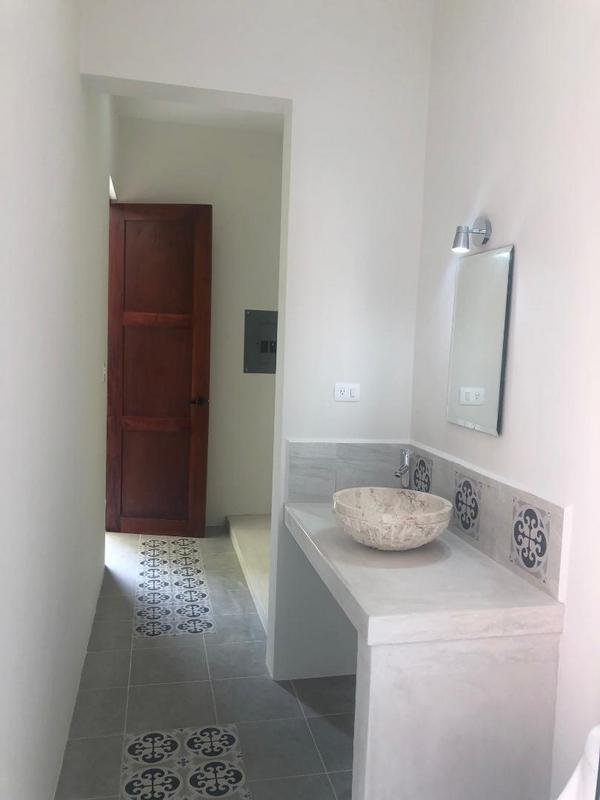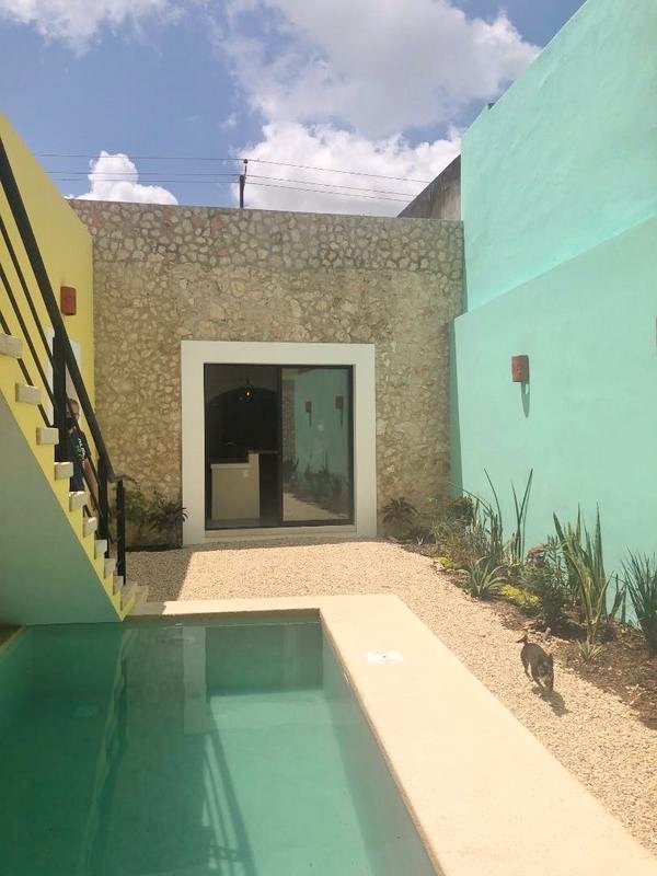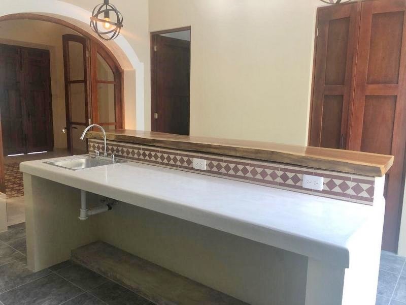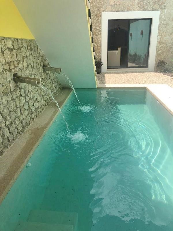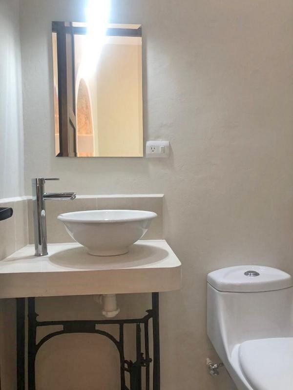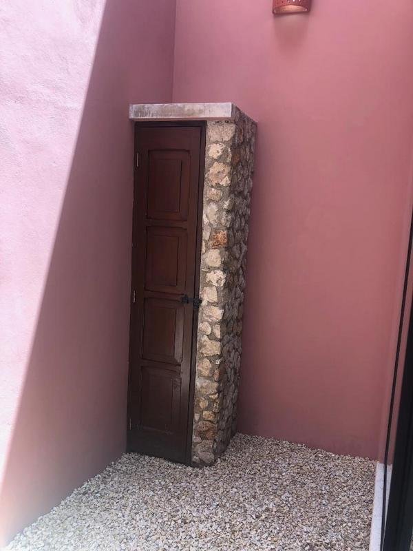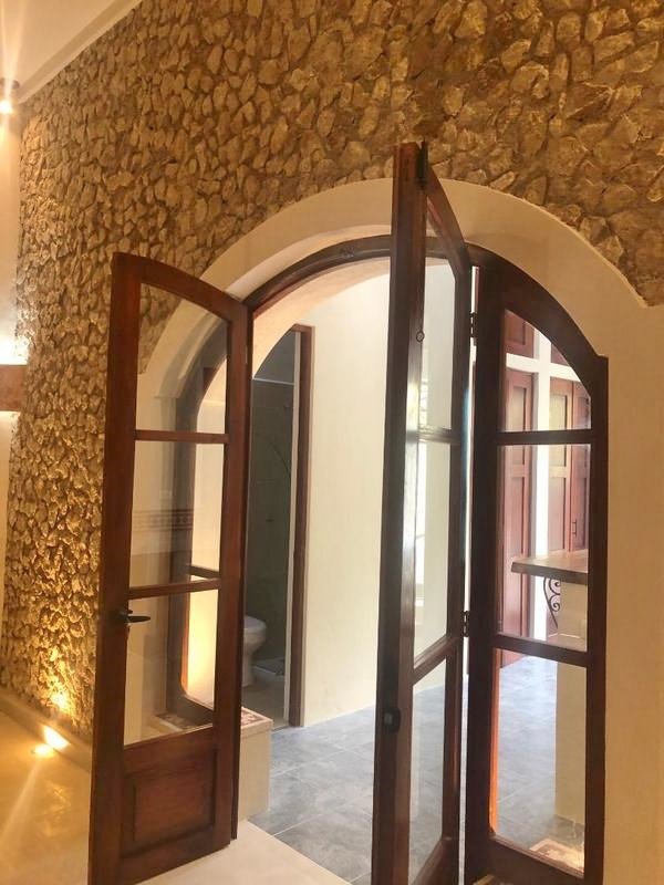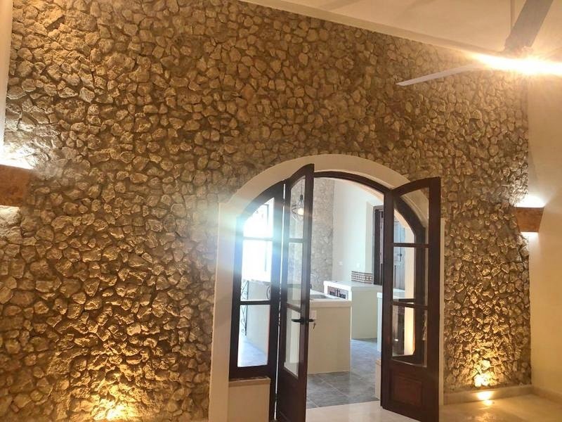 This cute home has been totally restored. The house has a living room with beautiful exposed stone wall. The eat in kitchen has lot of room with an amazing center isle made of one single cut of wood.  There is also a full bathroom  and pantry/washer dryer area off the kitchen. There is a terrace off the back of this home with a nice size pool with a filtration system and fountain. The house has two bedrooms and two bathrooms, one on the first floor the other above it. The pasta tile floors, classy iron work and colors add a true beauty to this home. The lot is 5.29 by 27.61 meters.