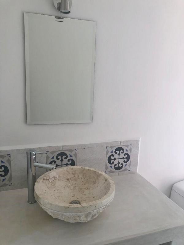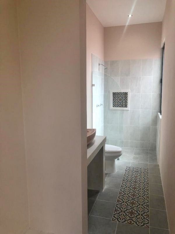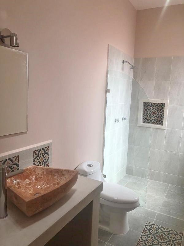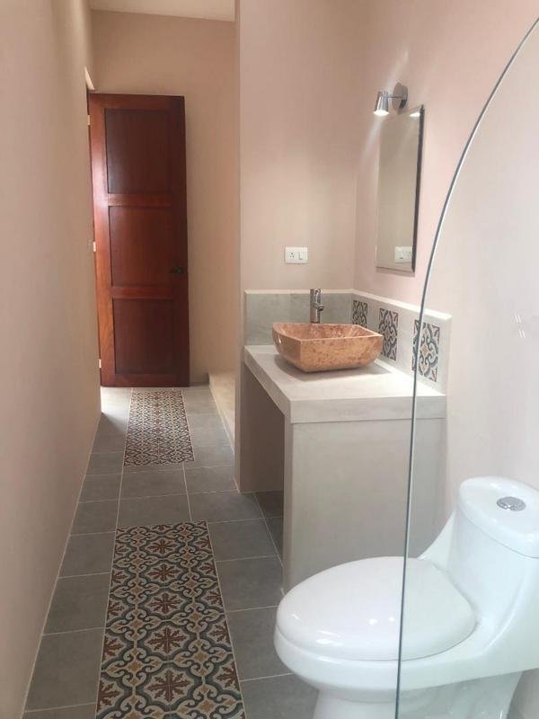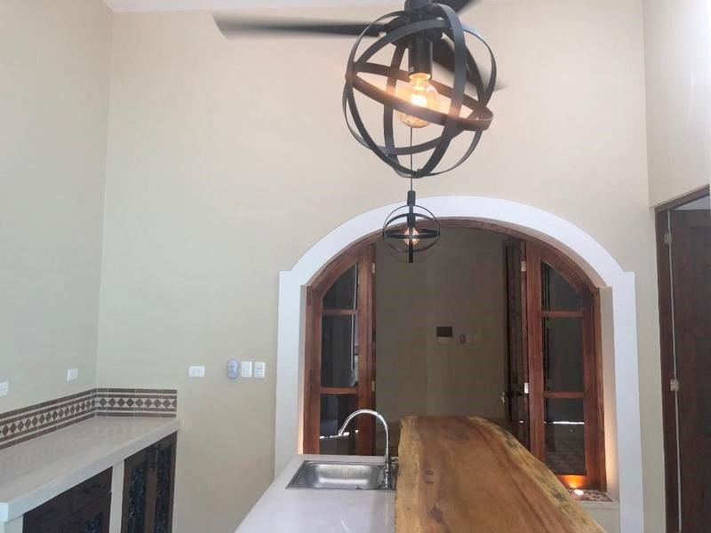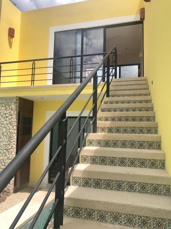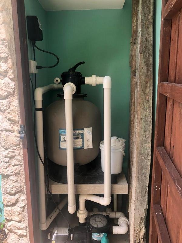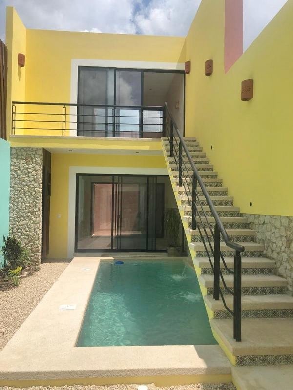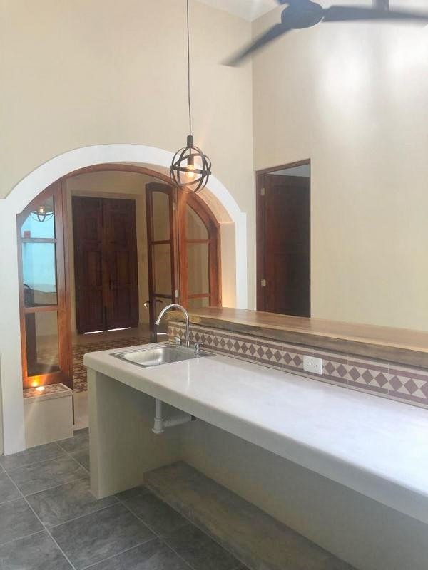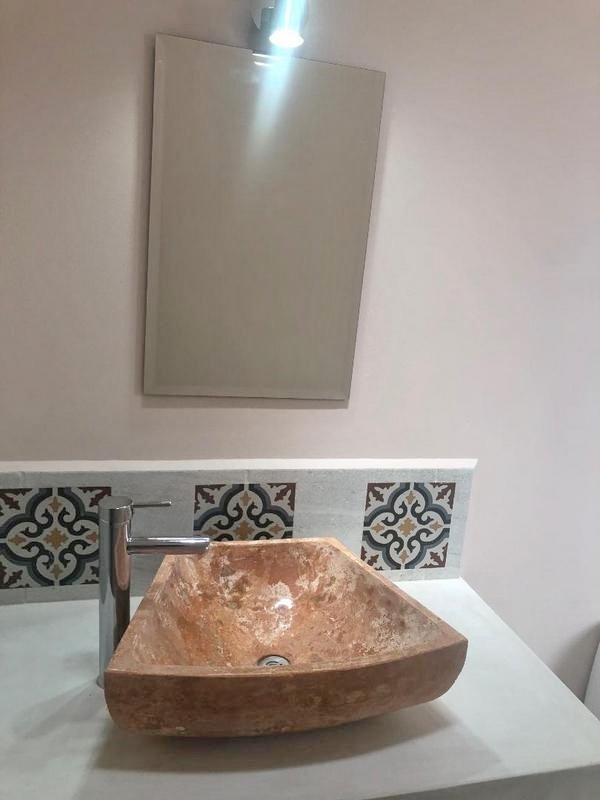 This cute home has been totally restored. The house has a living room with beautiful exposed stone wall. The eat in kitchen has lot of room with an amazing center isle made of one single cut of wood.  There is also a full bathroom  and pantry/washer dryer area off the kitchen. There is a terrace off the back of this home with a nice size pool with a filtration system and fountain. The house has two bedrooms and two bathrooms, one on the first floor the other above it. The pasta tile floors, classy iron work and colors add a true beauty to this home. The lot is 5.29 by 27.61 meters.