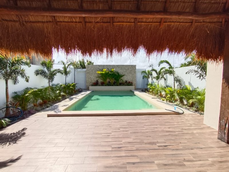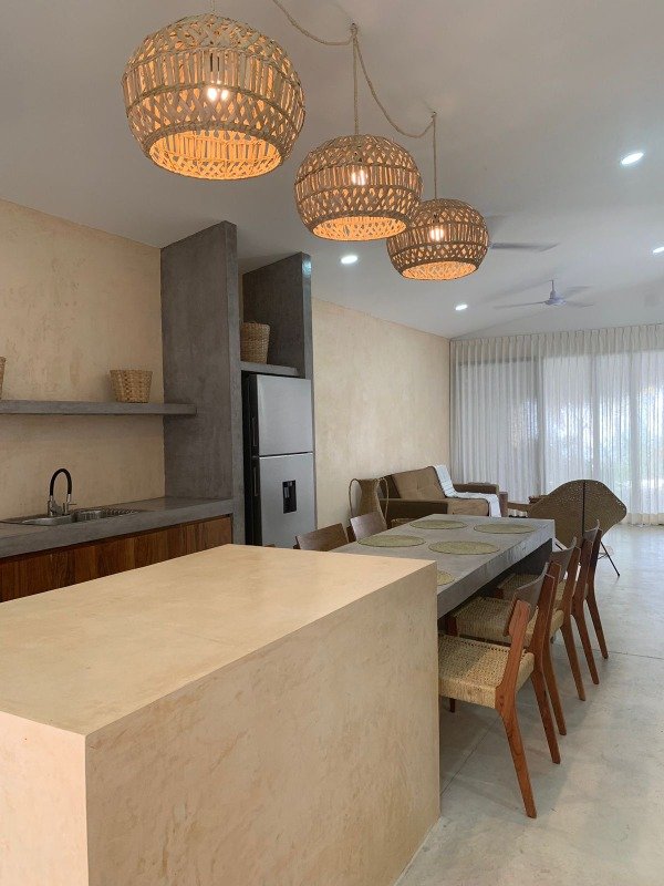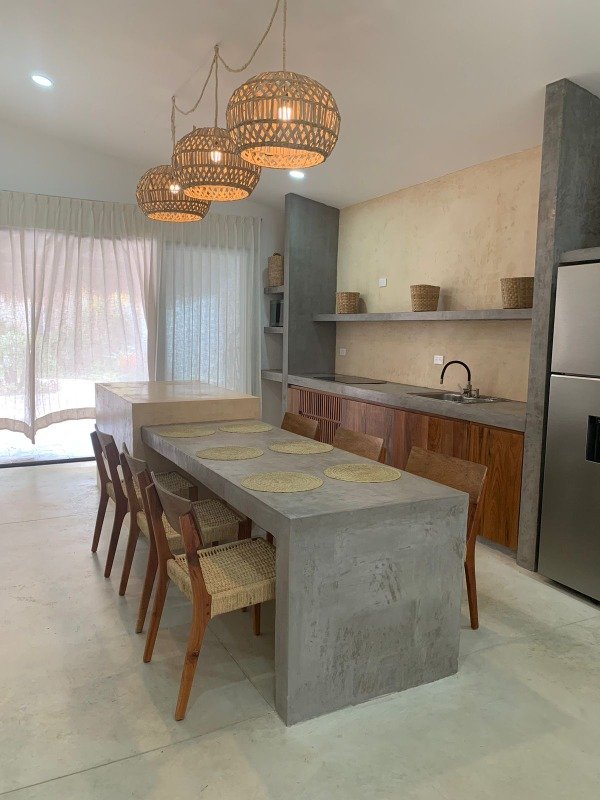 This magnificent residence has finishes in Chukum , polished cement and natural decor evoking a bohemian style, simple, modern.