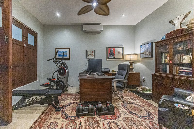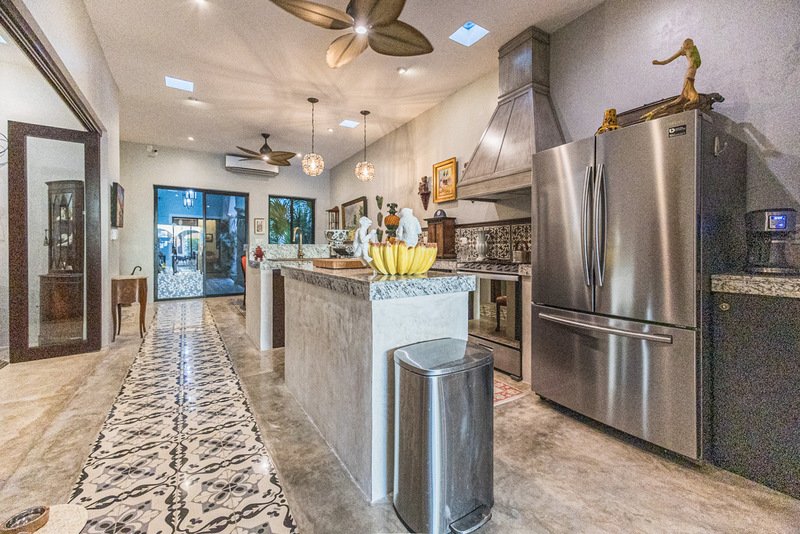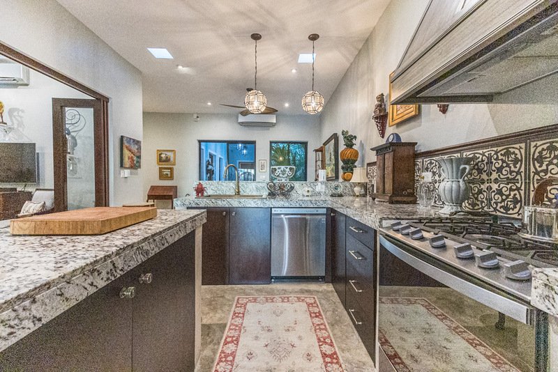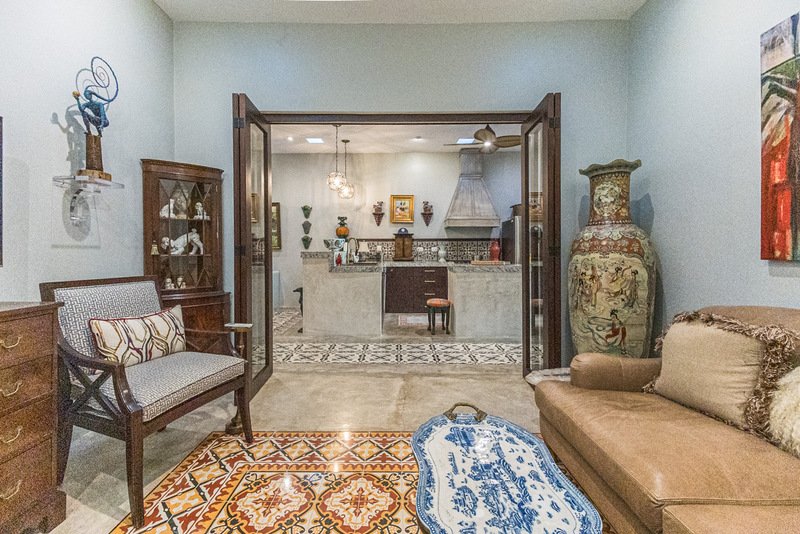 The heart of Casa Colina lies in its spectacular outdoor oasis. A large swimming pool acts as the centerpiece connecting the main house and the casita, surrounded by a sun deck and grill areas, providing unforgettable moments of relaxation and entertaining in your own tropical paradise.
