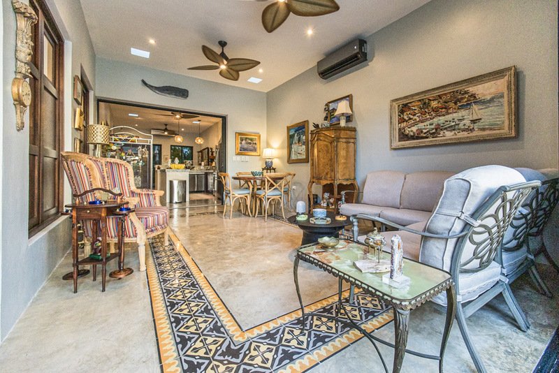 Featuring expansive living spaces with high ceilings, abundant natural light and picturesque painted walls, Casa Colina welcomes with a foyer that invites to the social areas through a peaceful, landscaped central courtyard and stone wall fountain. The main social areas are seamlessly integrated into an open concept design.