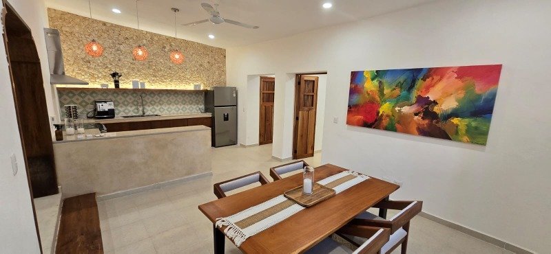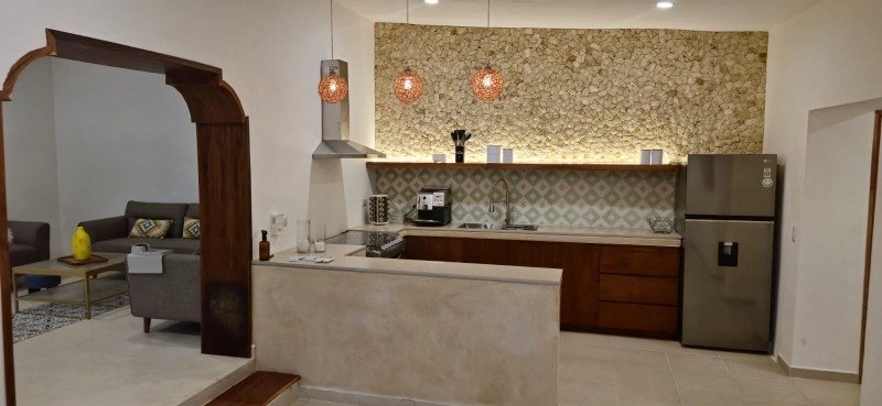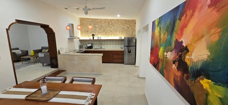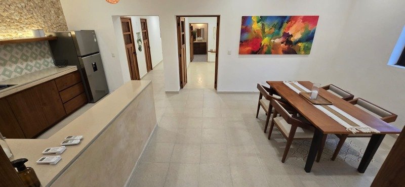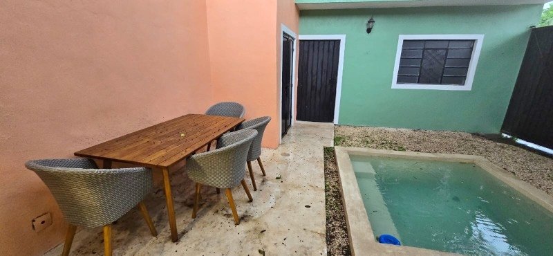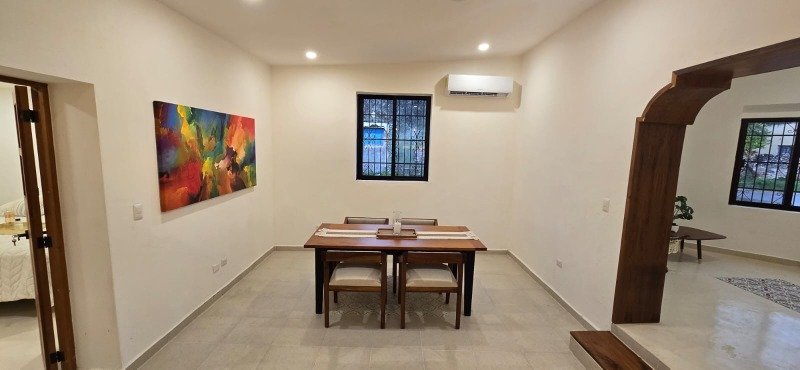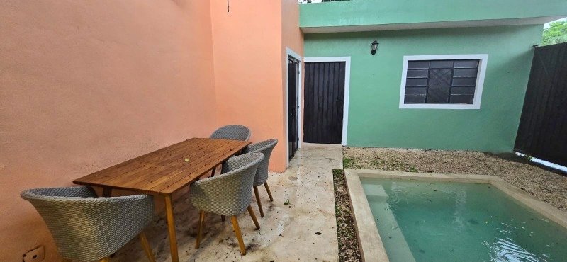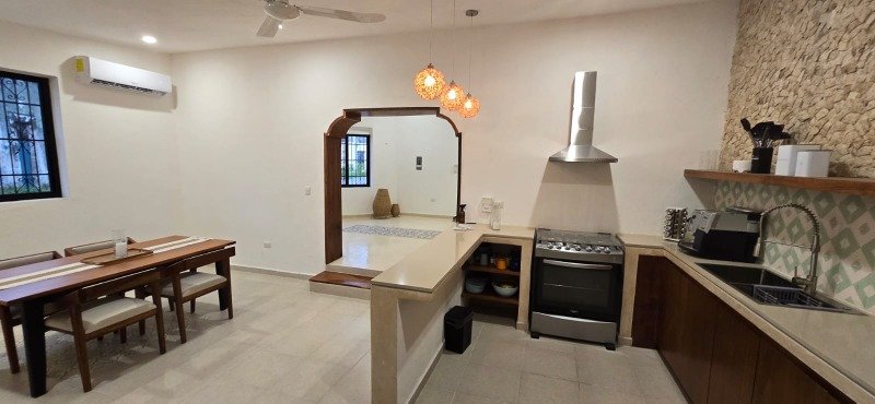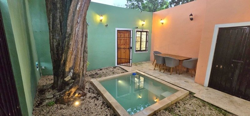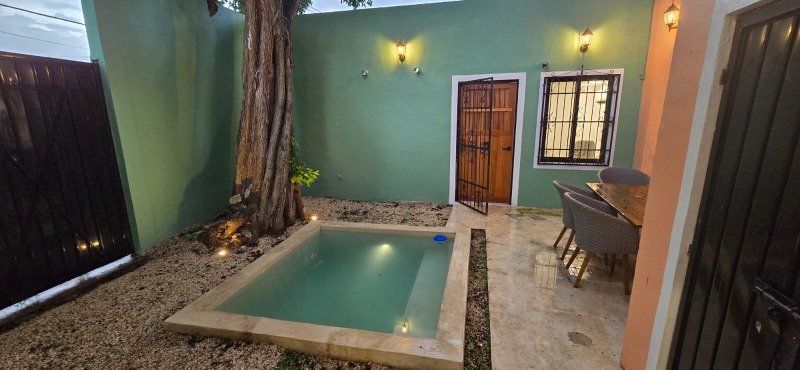 This is one of the best buys in Merida. Totally redone and waiting for you to start off a new life in The White City, Merida. This home has a living room, dining area, great kitchen, 2 bedrooms and 2 bathrooms. there is a place for Laundry. There are ceiling fans throughout and air conditioning. It comes with a microwave, oven, refrigerator. Very secure and nice area. Great backyard with a pool. This lovely home has so many beautiful features, big arched doorways, original Yucatan doors, stone wall in the kitchen and many things that makes it a must-see home. Close to the park and great little restaurants Perfect for an AIR B & B. . The lot is 5.70 X23.80 M. This is one home you must see. Great price, location and lots of charm.
