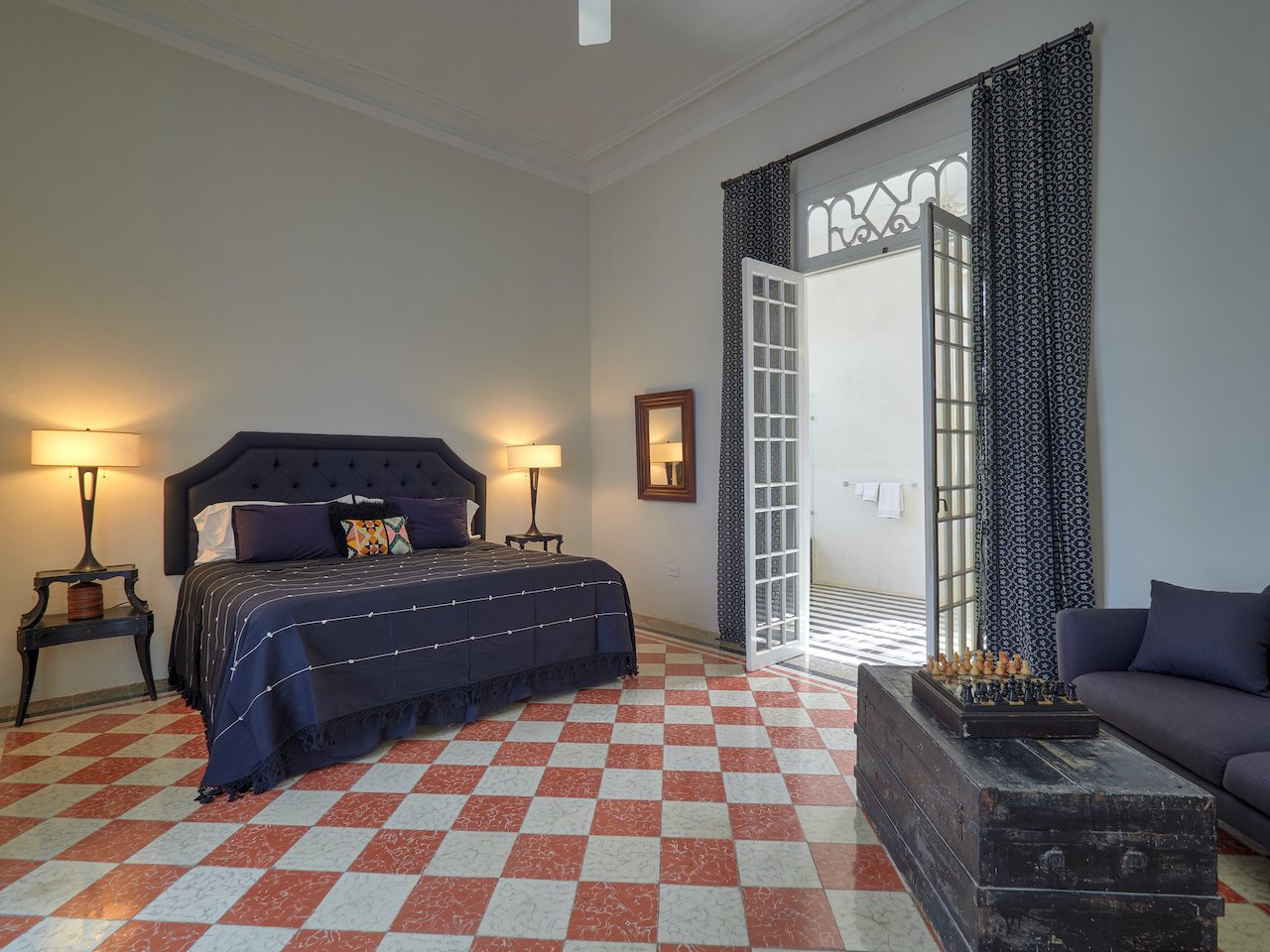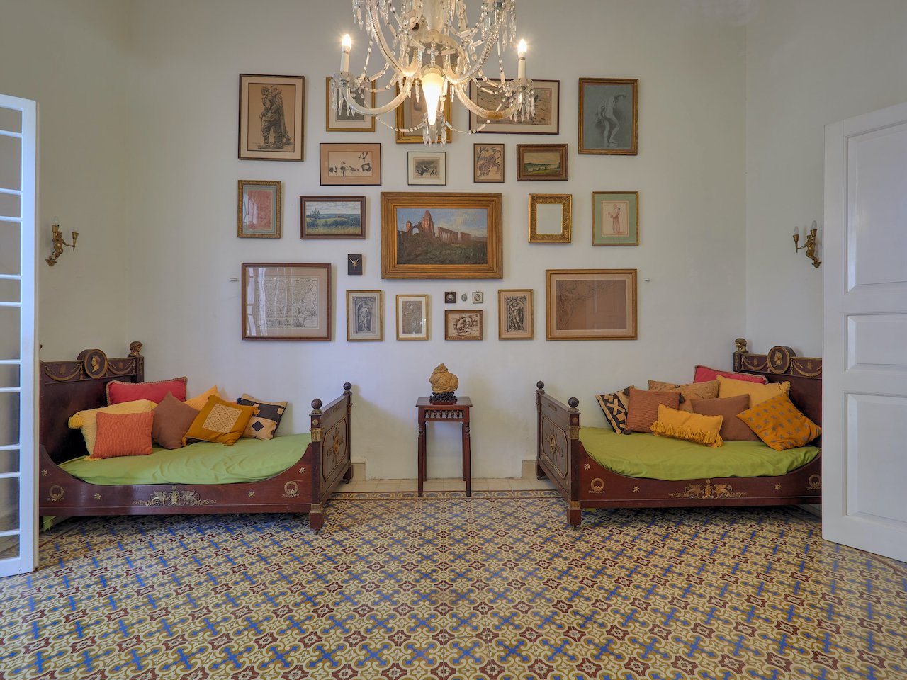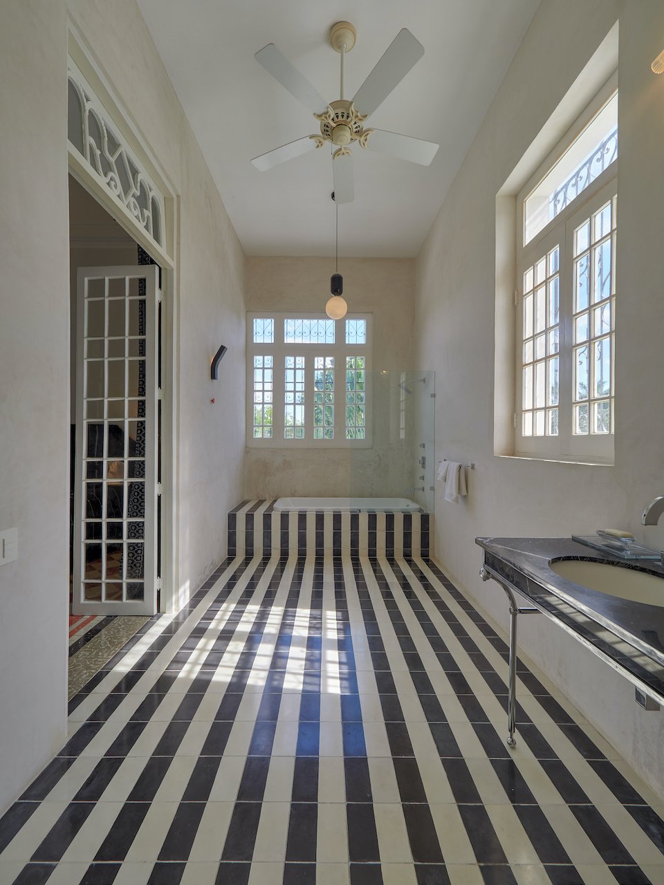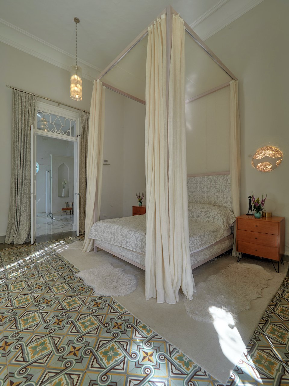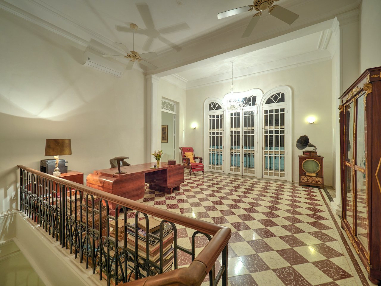 There are stunning original pasta tile floors, along with French doors on every wall bringing in light from all directions to the soaring archways and twenty-foot ceilings.