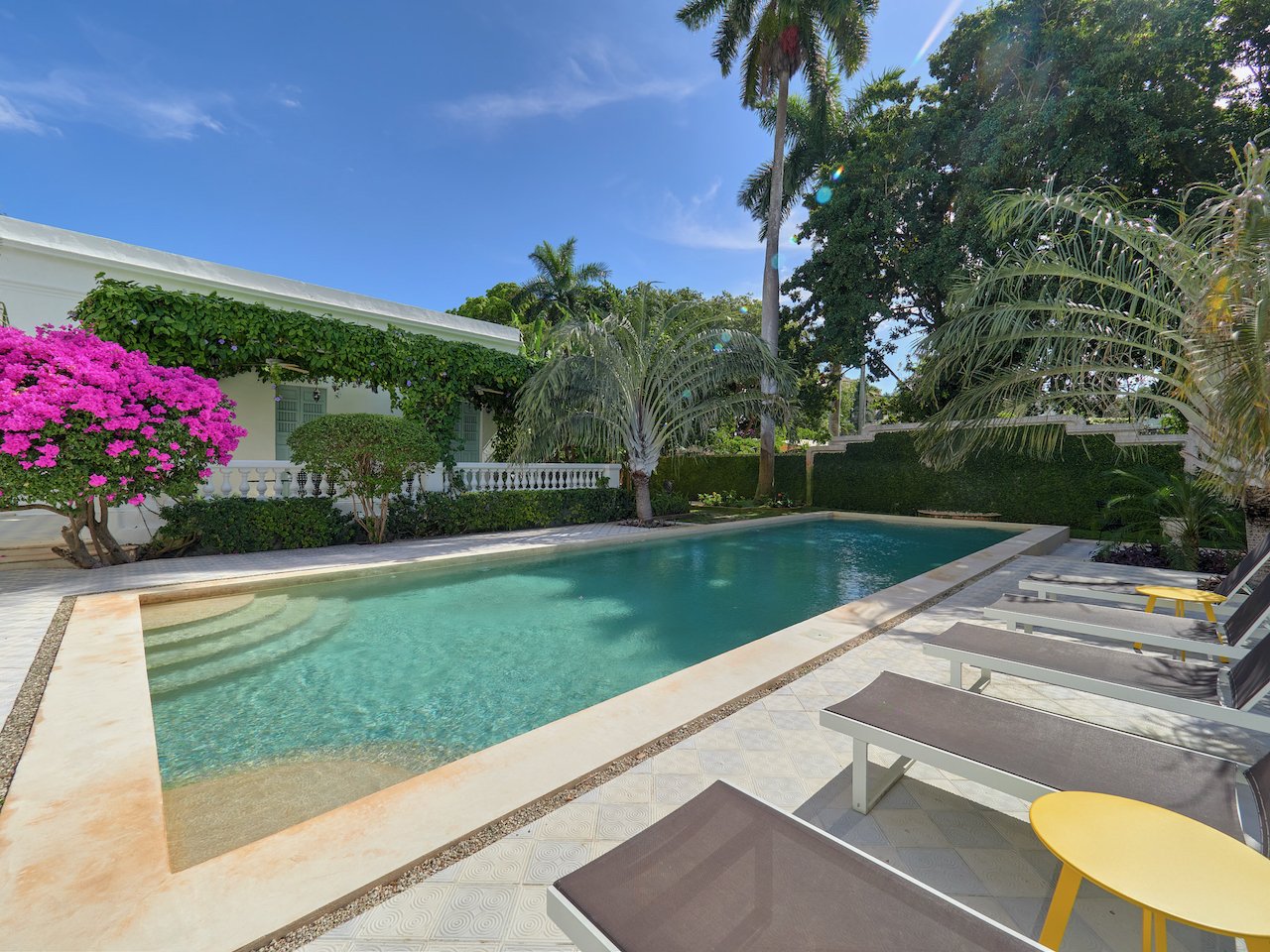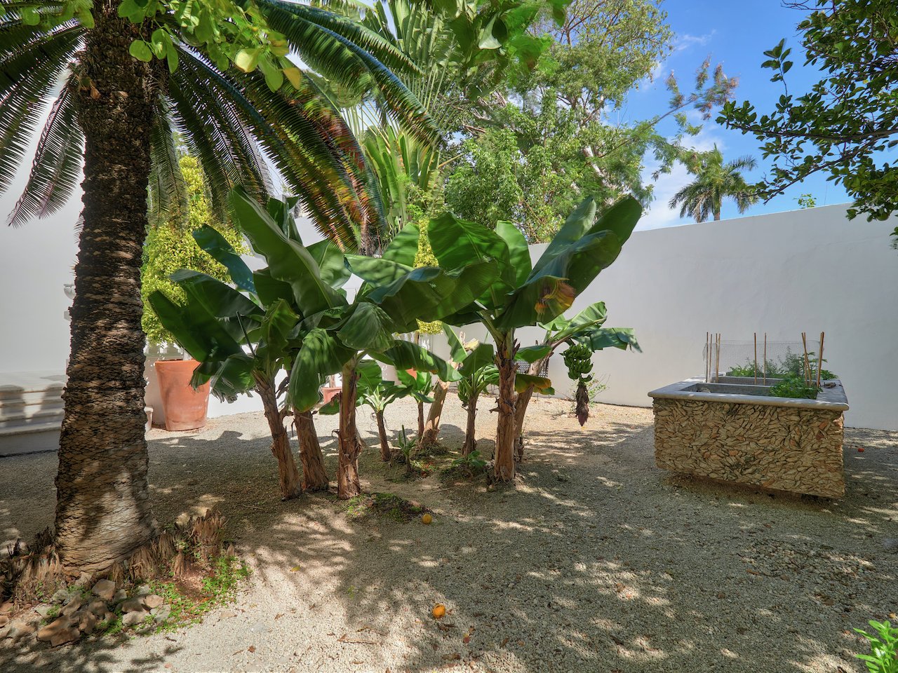 Alongside a flowering pergola with dining and seating areas you will find a new 50-foot filtered lap pool. The home is surrounded on all four sides by mature gardens including an orange orchard and raised aqua garden, designed for growing vegetables year-round. There are multiple mature fruit trees (mandarin, sour orange, banana, and tamarind).