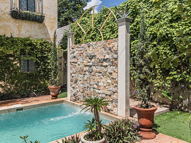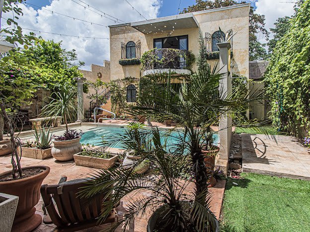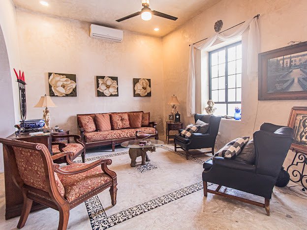 Centro living at its best in this prime Santa Ana location with this 4 bedrooms/4 full bath home. Casa Candelabro is an inviting colonial home finished in a stunning neutral palette of Chukum. The home offers single floor living with just one upstairs secondary bedroom in the casita.