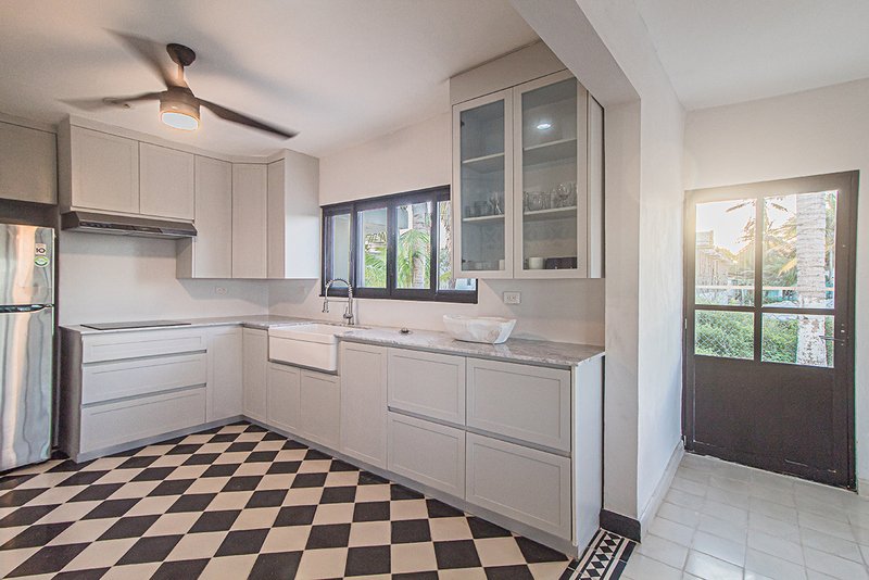 Adjacent to the common living space is the pool terrace with a refreshing Chukum pool and views of the Gulf. Near the pool area is a BBQ area with an outdoor sink. In the front of the home is the spacious terrace with ample room to entertain guests. The home is completely freestanding and offers additional space for gardens and outdoor living.