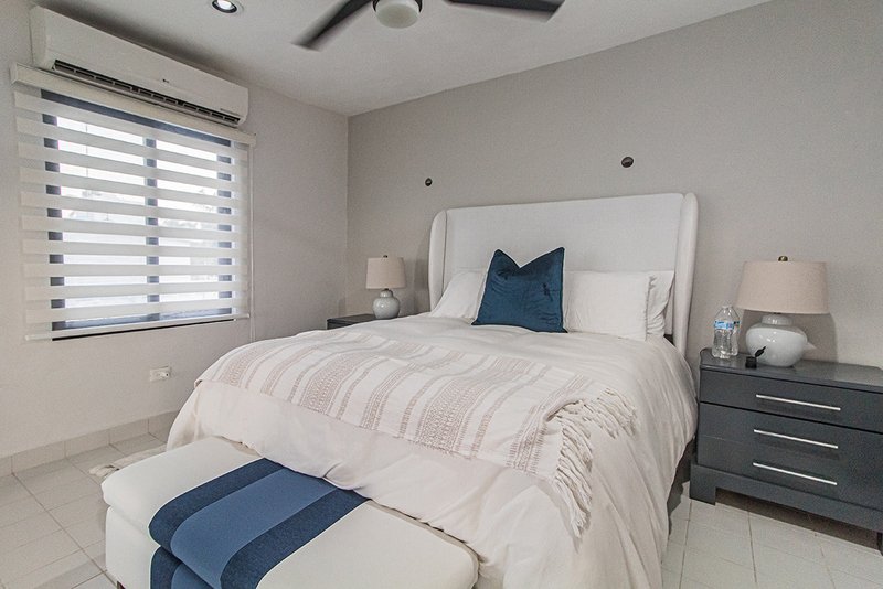 Upstairs, there are two additional bedrooms sharing a full bathroom. The highlight of the second floor is the expansive covered terrace, a spot to savor the picturesque beach landscapes and the soothing ocean breeze.