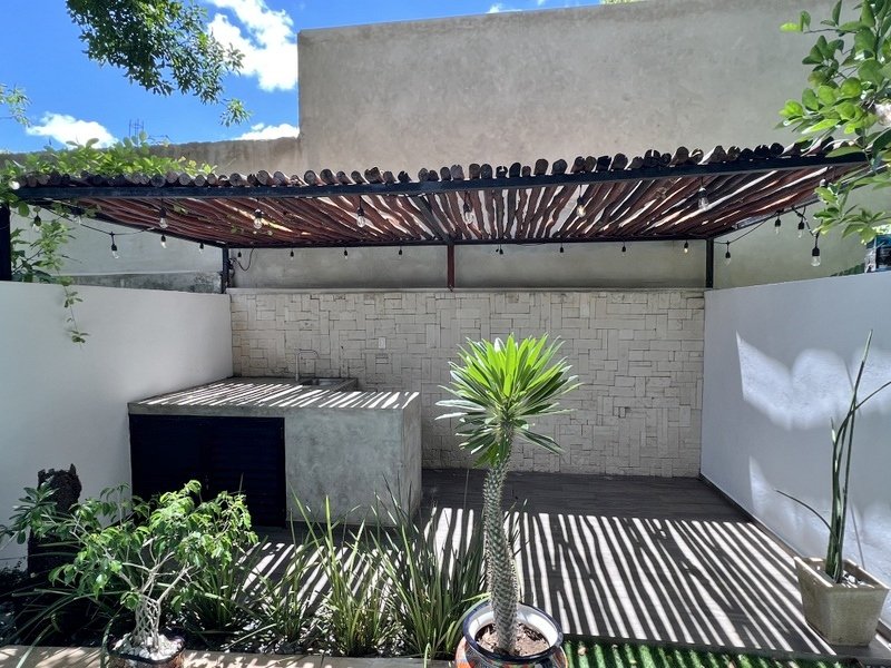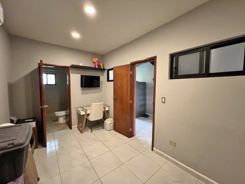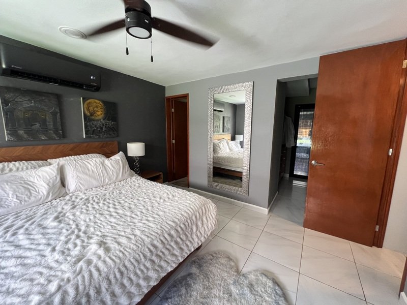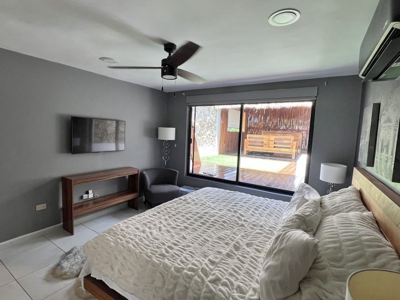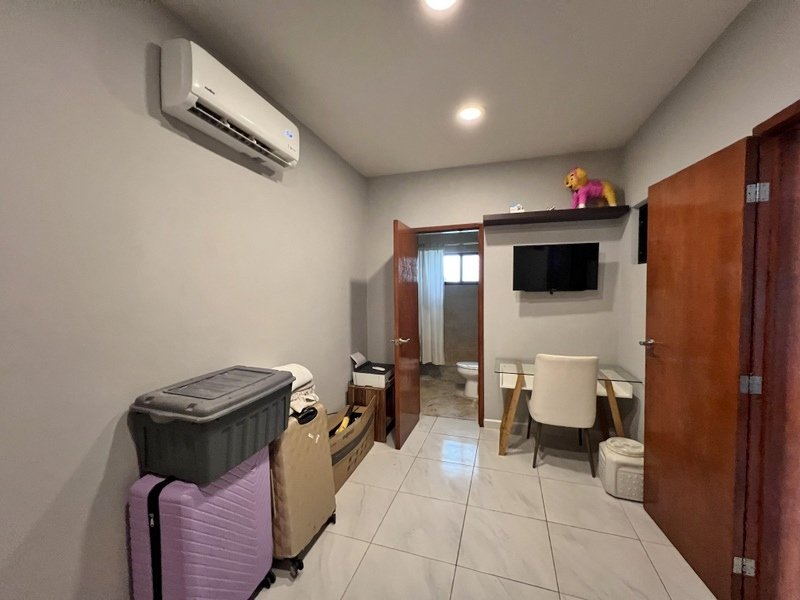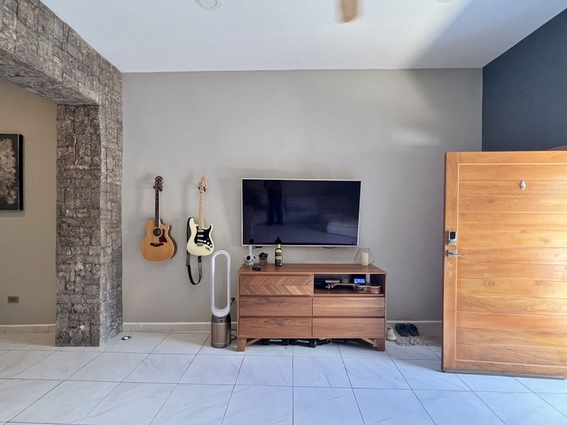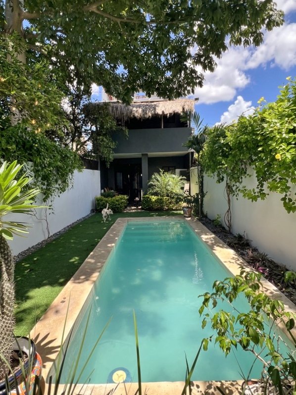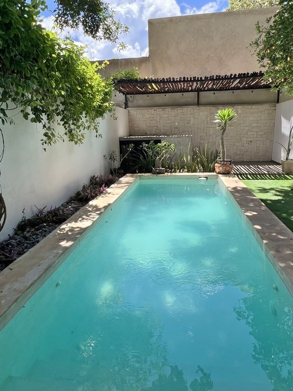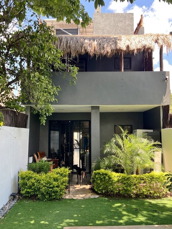 This lovely home offering complete privacy is located in the popular Santiago neighborhood. Remodeled in 2022 and freshly painted this home is in move in condition. Rooms are spacious and beautifully appointed. All appliances and furniture are included. There are ten 330 watt solar panels and four 550 watt panels. This Smart home is equipped with Wi-Fi and Alexa enabled lights and air conditioning. The kitchen is modern with high end appliances and granite countertops. Just outside the kitchen is the laundry area with a washer and dryer. One bedroom with on suite bathroom is located on the ground floor . The second story offers a large master bedroom with on suite, a private patio, sun area and a large palapa. This bedroom overlooks the private enchanting low maintenance garden with filtered pool. The garden has a BBQ area with a sink. Special features of this home are custom painted walls in the living room and dining room and a bricked arch in the living room. The front doors are glass with secondary wood door offer excellent insulation. The EV charger is also included. This beautiful home awaits you.