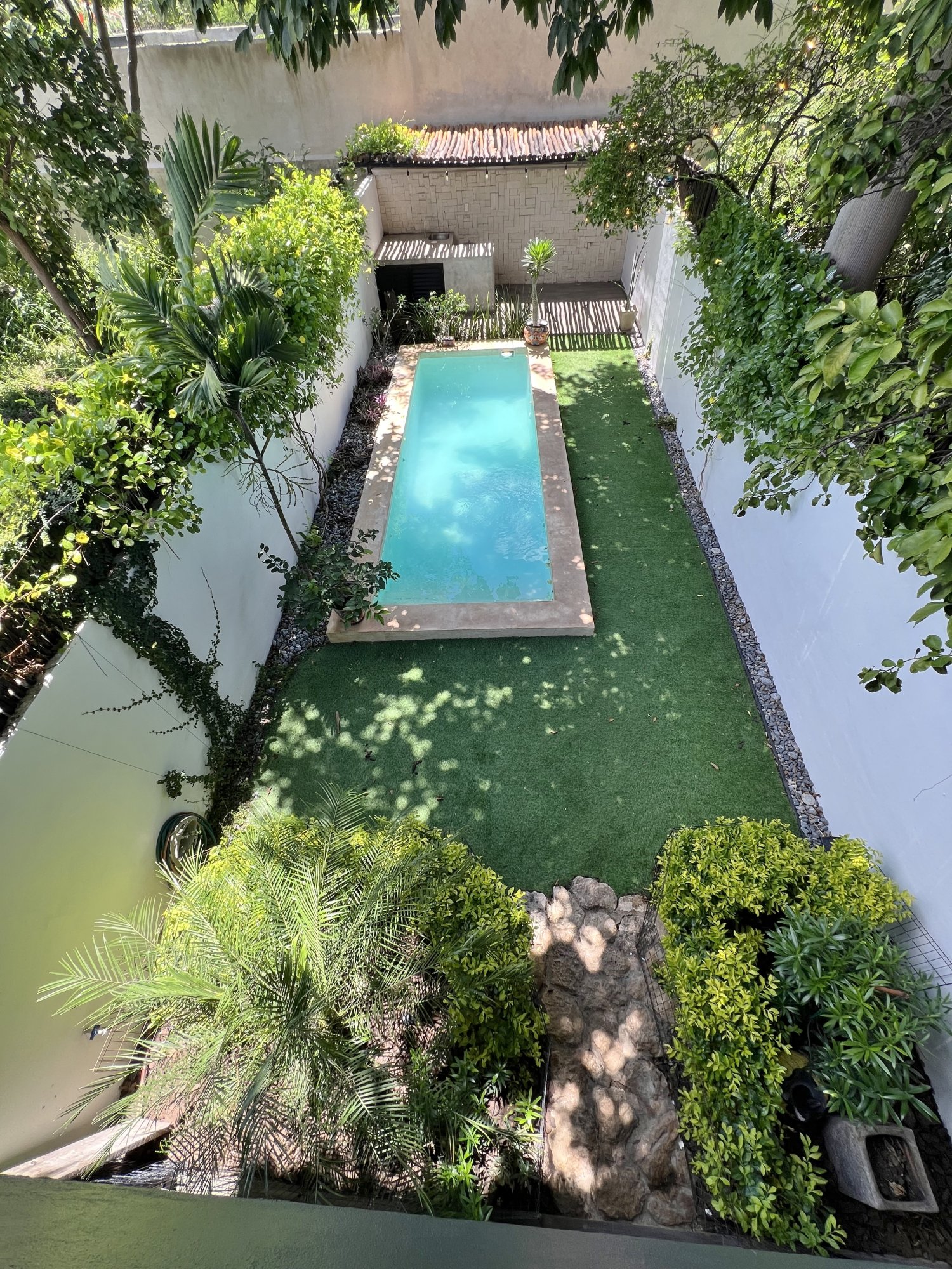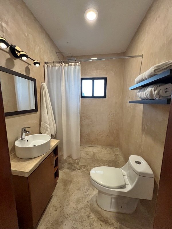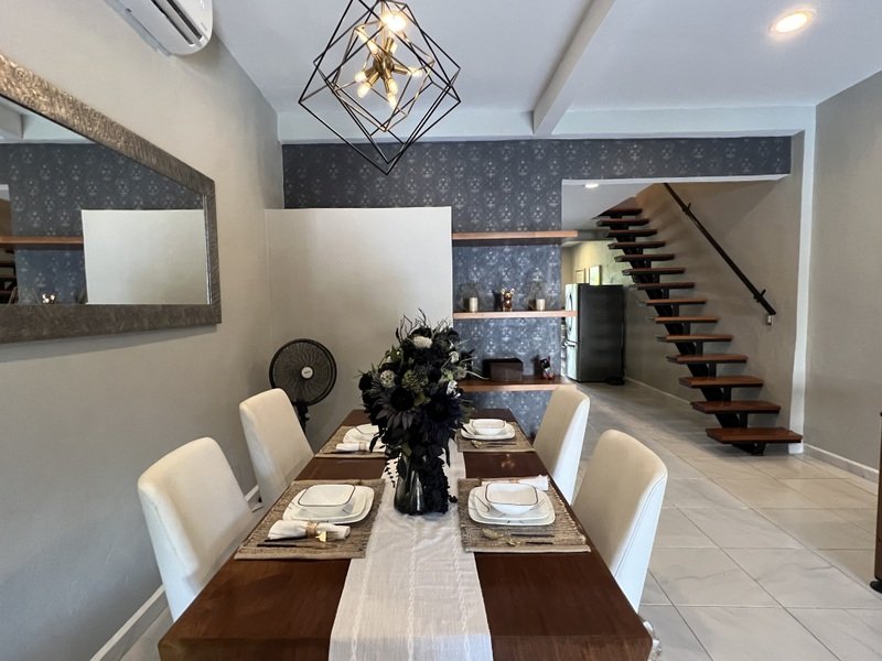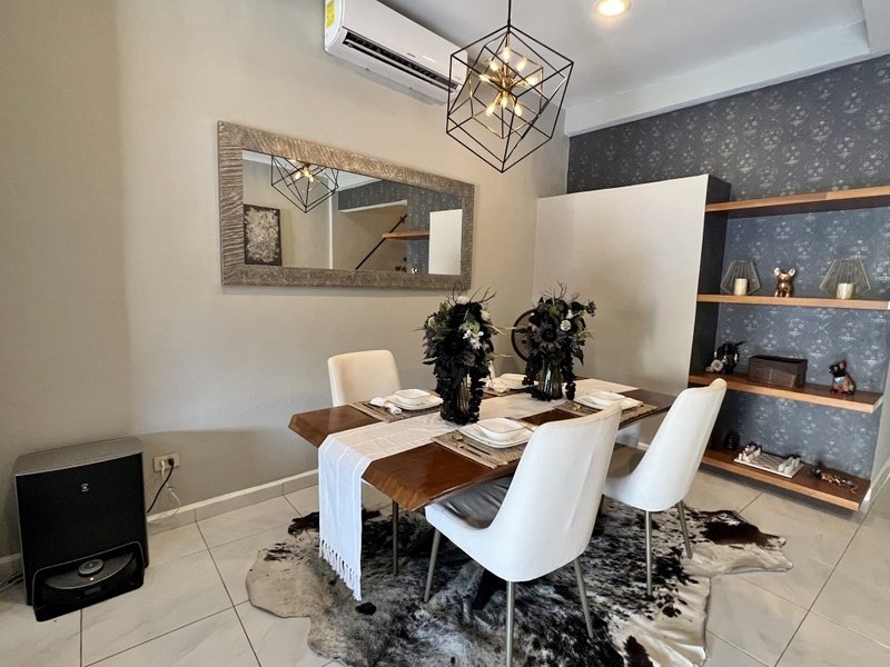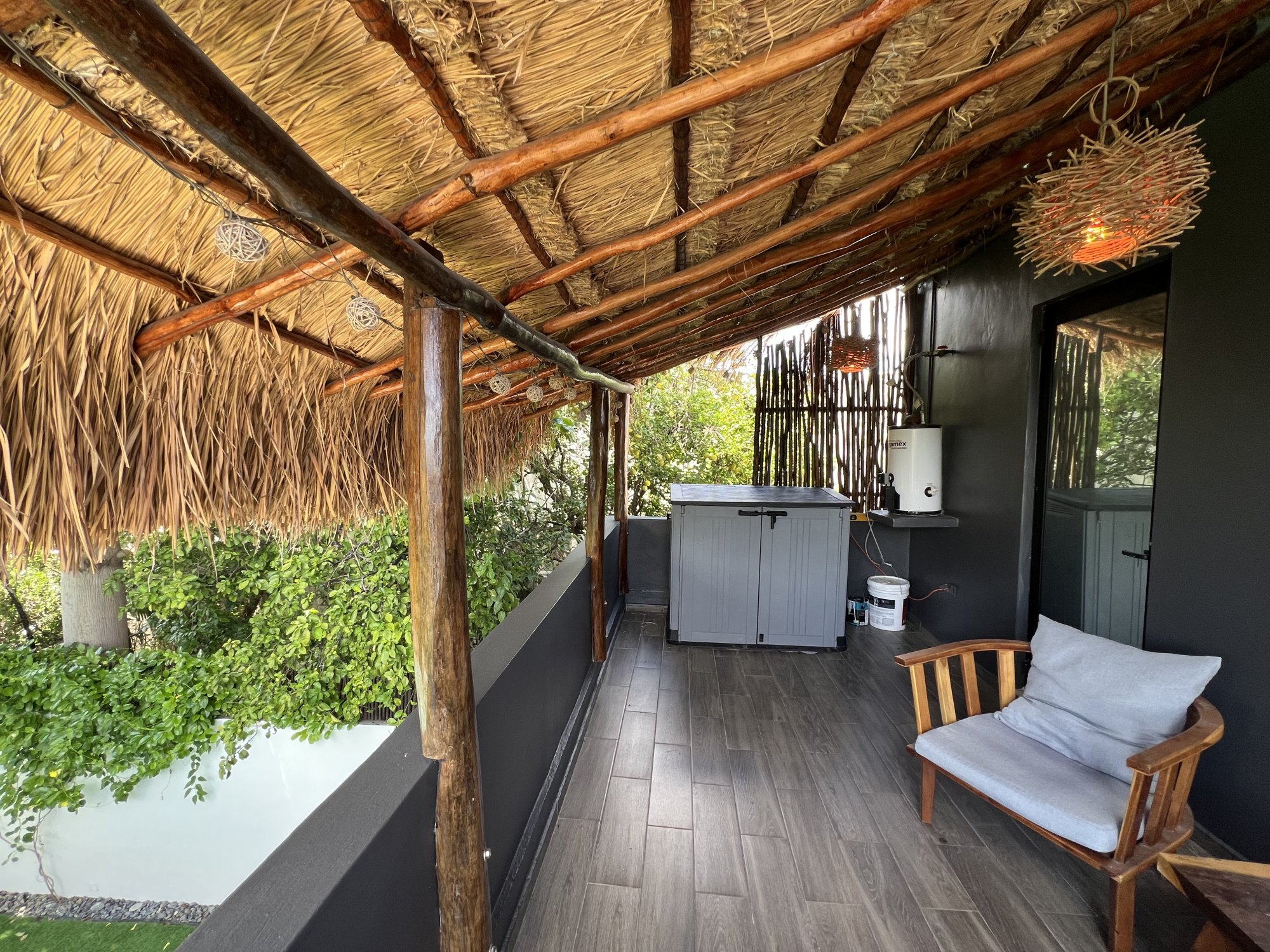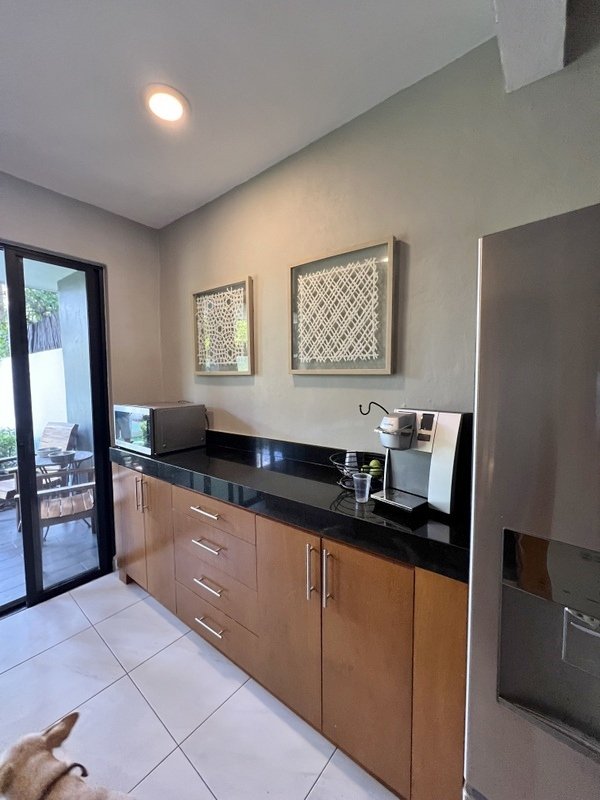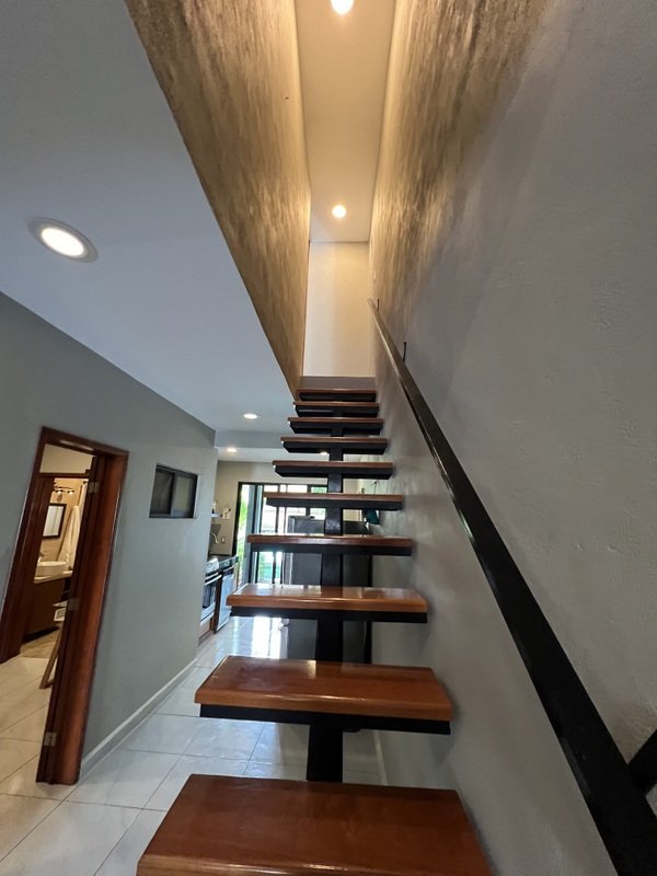 This lovely home offering complete privacy is located in the popular Santiago neighborhood. Remodeled in 2022 and freshly painted this home is in move in condition. Rooms are spacious and beautifully appointed. All appliances and furniture are included. There are ten 330 watt solar panels and four 550 watt panels. This Smart home is equipped with Wi-Fi and Alexa enabled lights and air conditioning. The kitchen is modern with high end appliances and granite countertops. Just outside the kitchen is the laundry area with a washer and dryer. One bedroom with on suite bathroom is located on the ground floor . The second story offers a large master bedroom with on suite, a private patio, sun area and a large palapa. This bedroom overlooks the private enchanting low maintenance garden with filtered pool. The garden has a BBQ area with a sink. Special features of this home are custom painted walls in the living room and dining room and a bricked arch in the living room. The front doors are glass with secondary wood door offer excellent insulation. The EV charger is also included. This beautiful home awaits you.