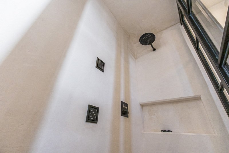 The stunning 2 bedroom, 2.5 bathroom main house flanked by arches welcomes another open concept living space which encompasses the living room, dining room, half bath, and equipped kitchen complete with custom made cabinets and a terrazzo island. At the rear is the large utility room containing all the home equipment, laundry room and space for storage.