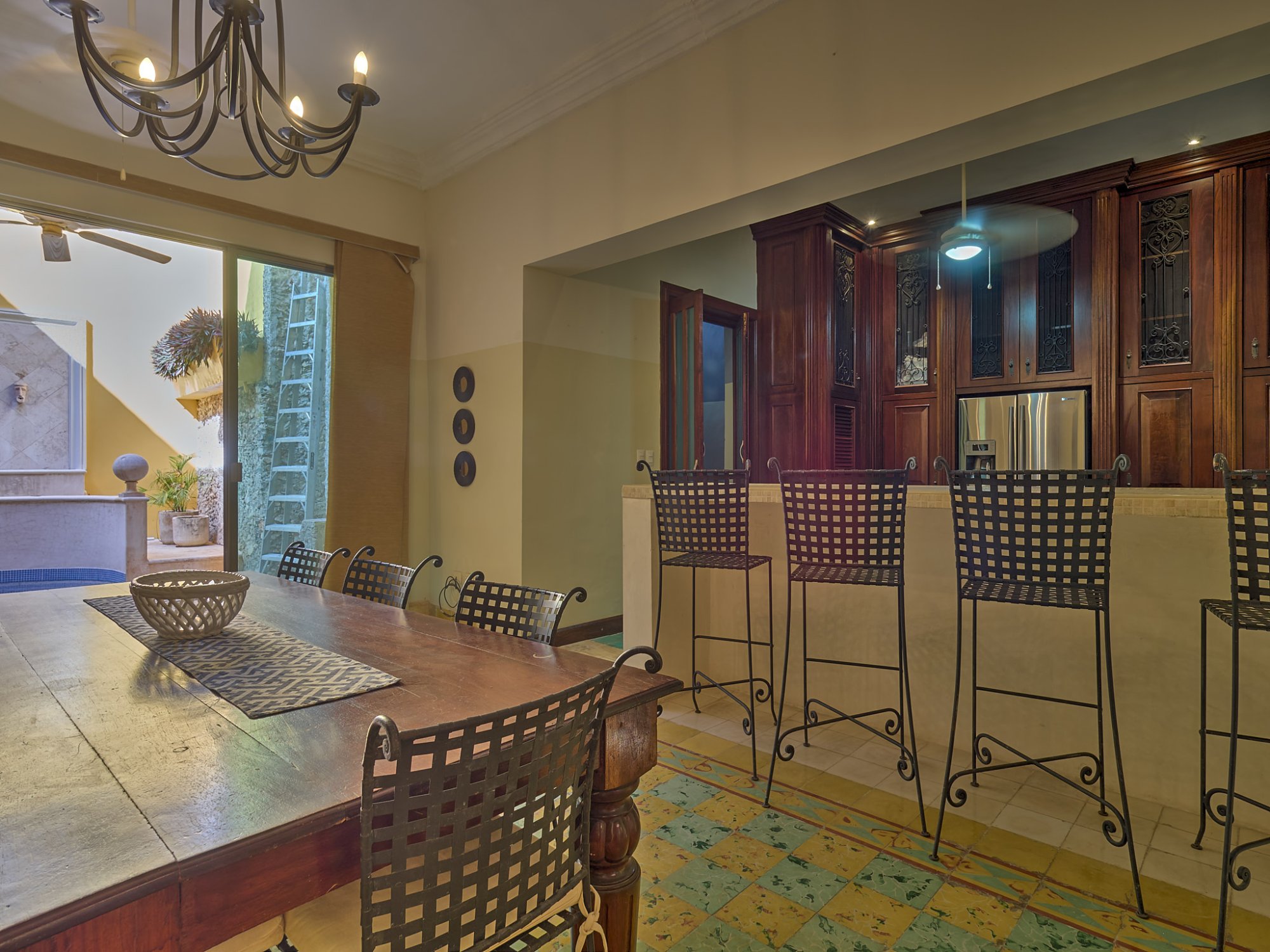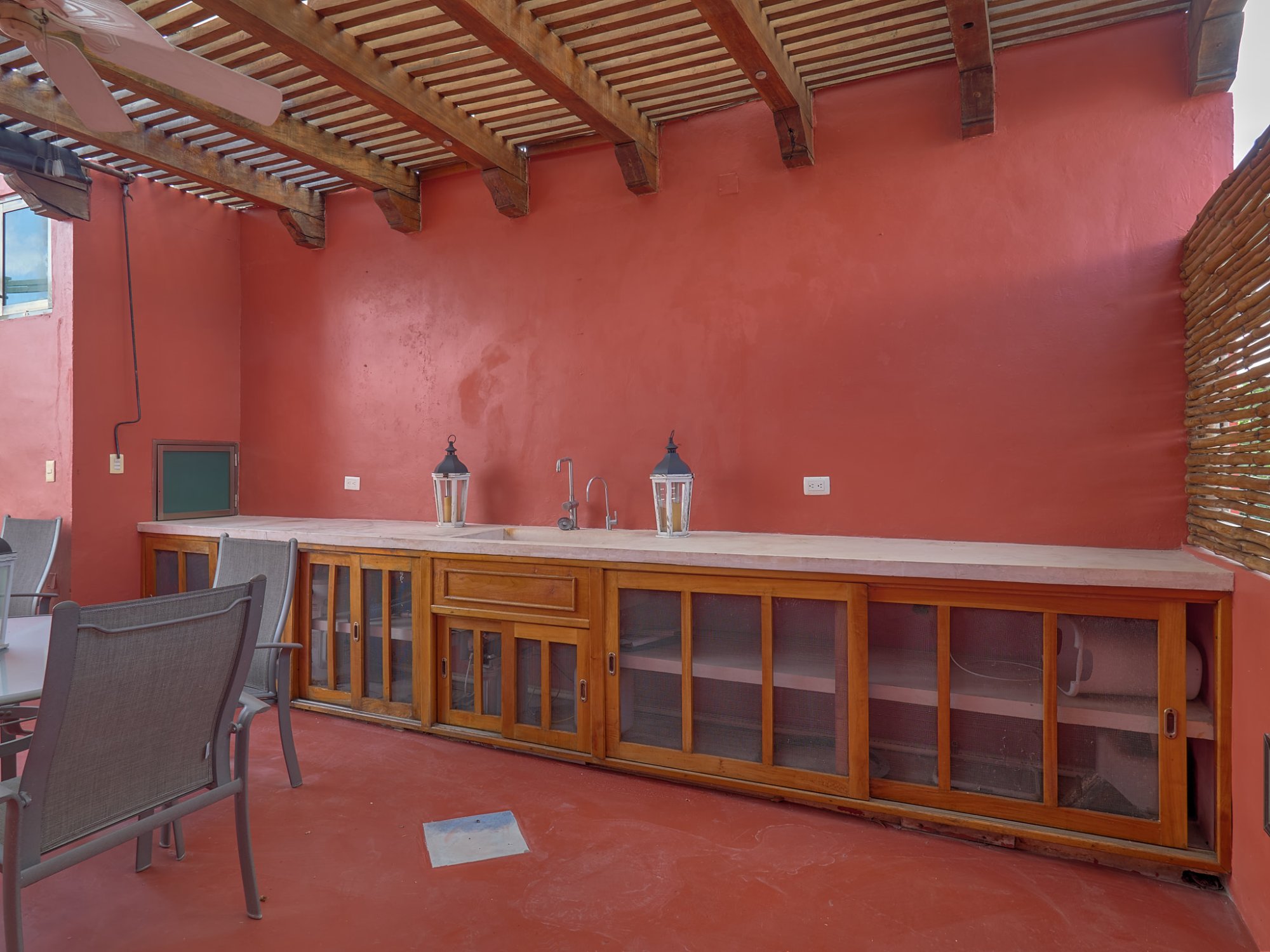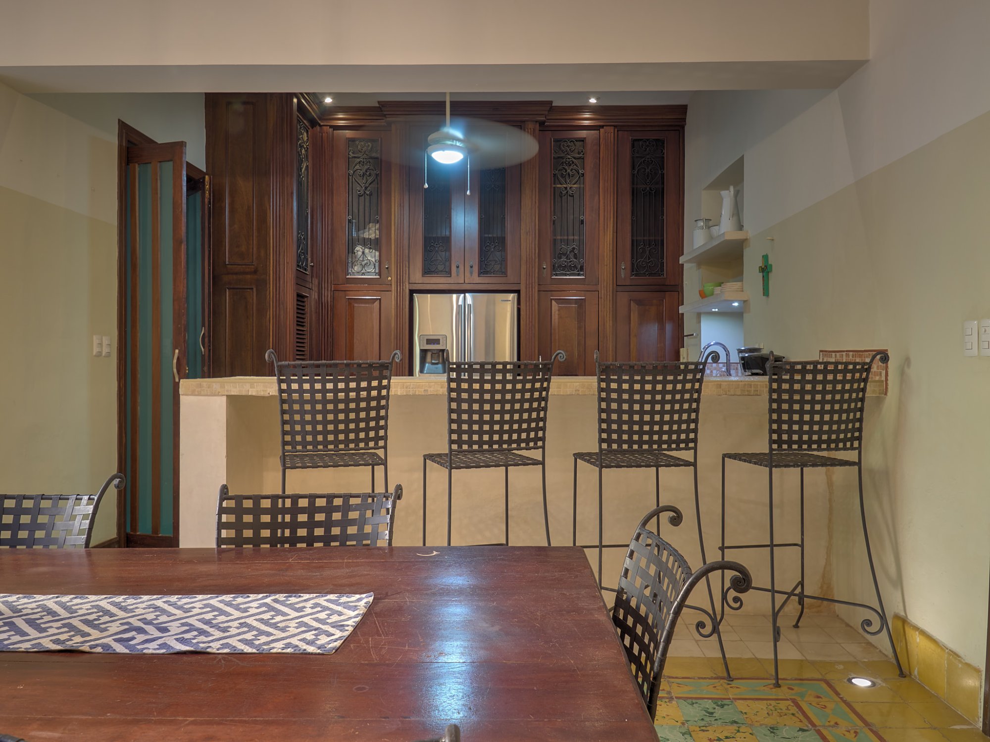This beautiful homes has been totally redone, repaired and is in a great location, Santa Ana and Reforma. The first floor has a huge entrance foyer, sitting/living room, large dining area, magnificent kitchen with custom made wooden cabinets everywhere. and reverse osmosis under the counter space. It is a dream kitchen to work in. There is also a half bath and lovely filtered pool area with fountain.