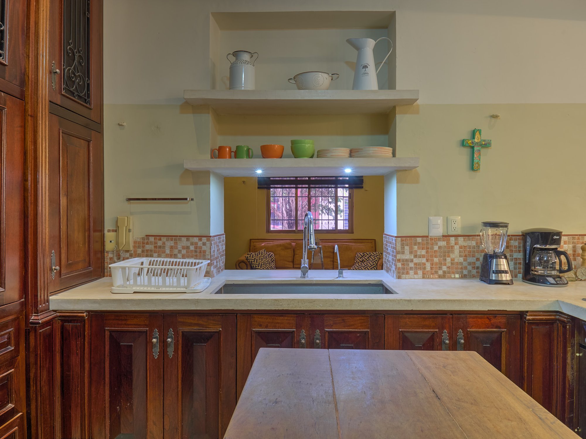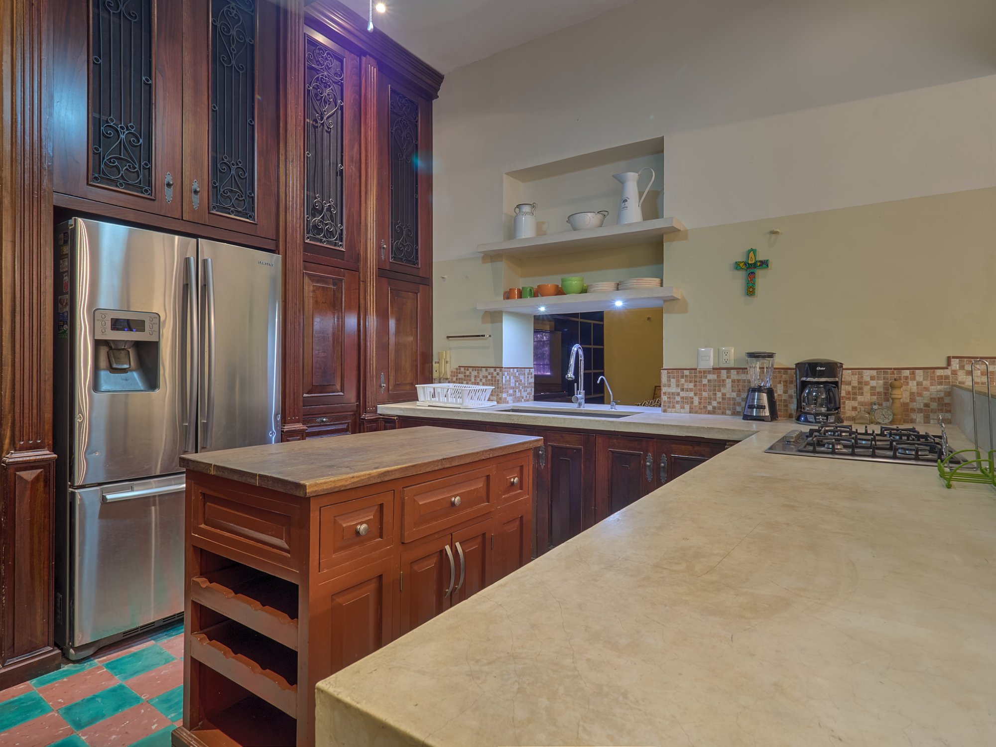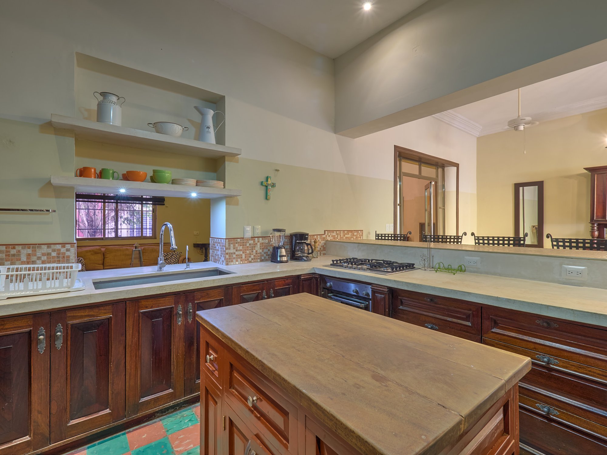 This beautiful homes has been totally redone, repaired and is in a great location, Santa Ana and Reforma. The first floor has a huge entrance foyer, sitting/living room, large dining area, magnificent kitchen with custom made wooden cabinets everywhere. and reverse osmosis under the counter space. It is a dream kitchen to work in. There is also a half bath and lovely filtered pool area with fountain.