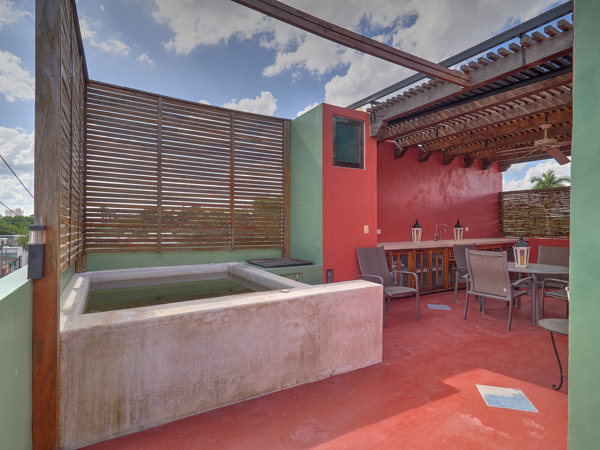 The third floor has a bedroom and bathroom. There is a huge terrace that looks out over the city and a jacuzzi for late night star gazing. This is an amazing home in a great location, and to top it off it comes completely furnished.