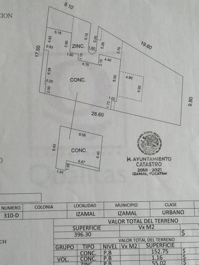 The measurements of this property are 17.50 m in front and 28 m deep. The land is irregular so it closes at 9.80 m.