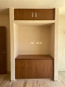 *Kitchen dressed with granite countertop and partners, as well as cedar wood cabinets, drawers and spice rack area and luxury tzalam slat, preparations for dishwasher installation and includes electric hood