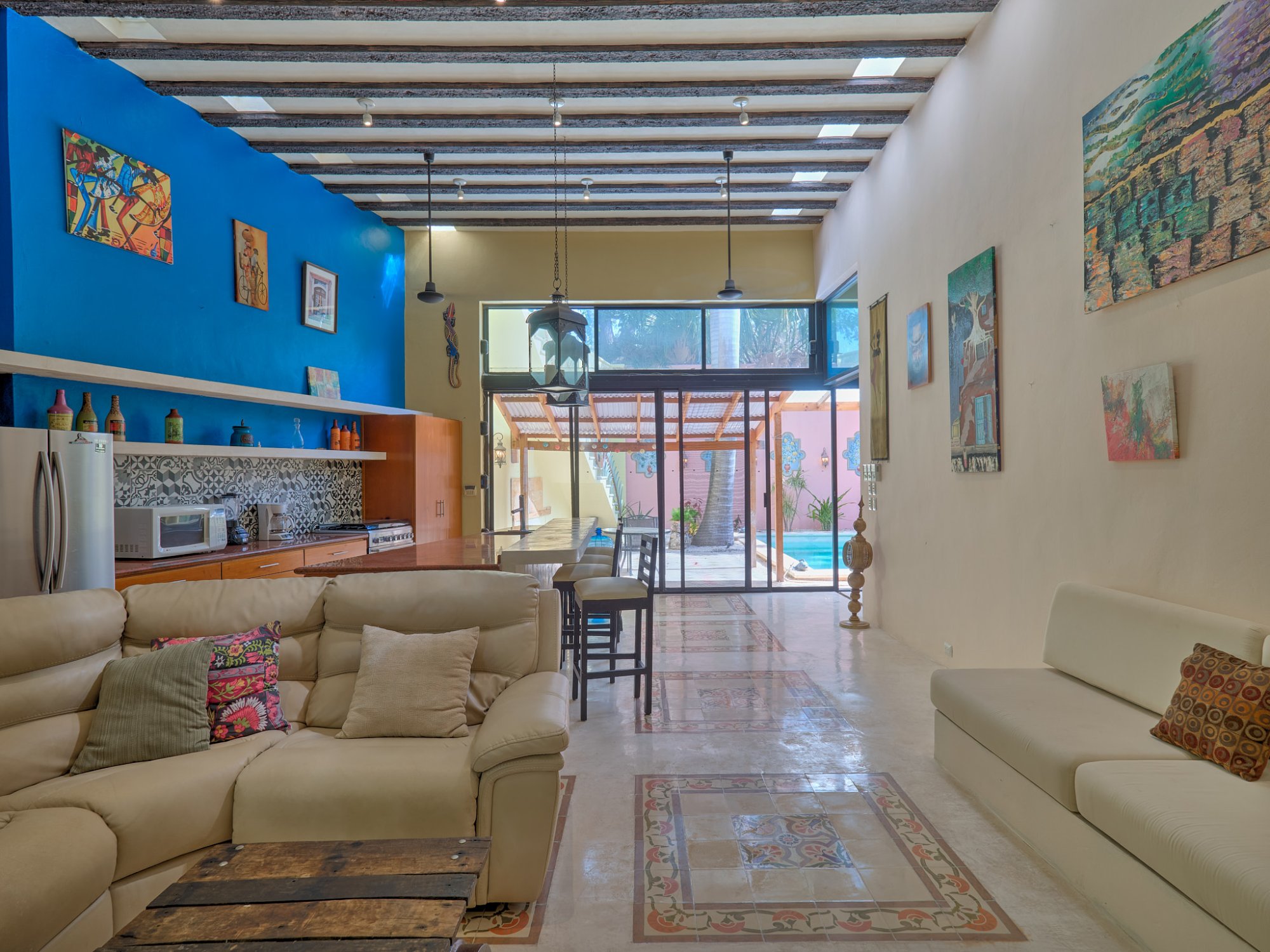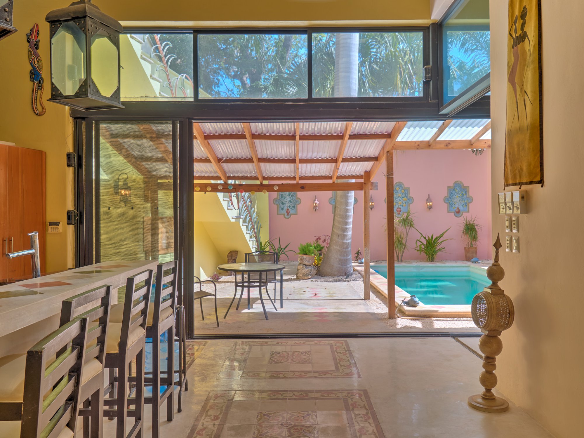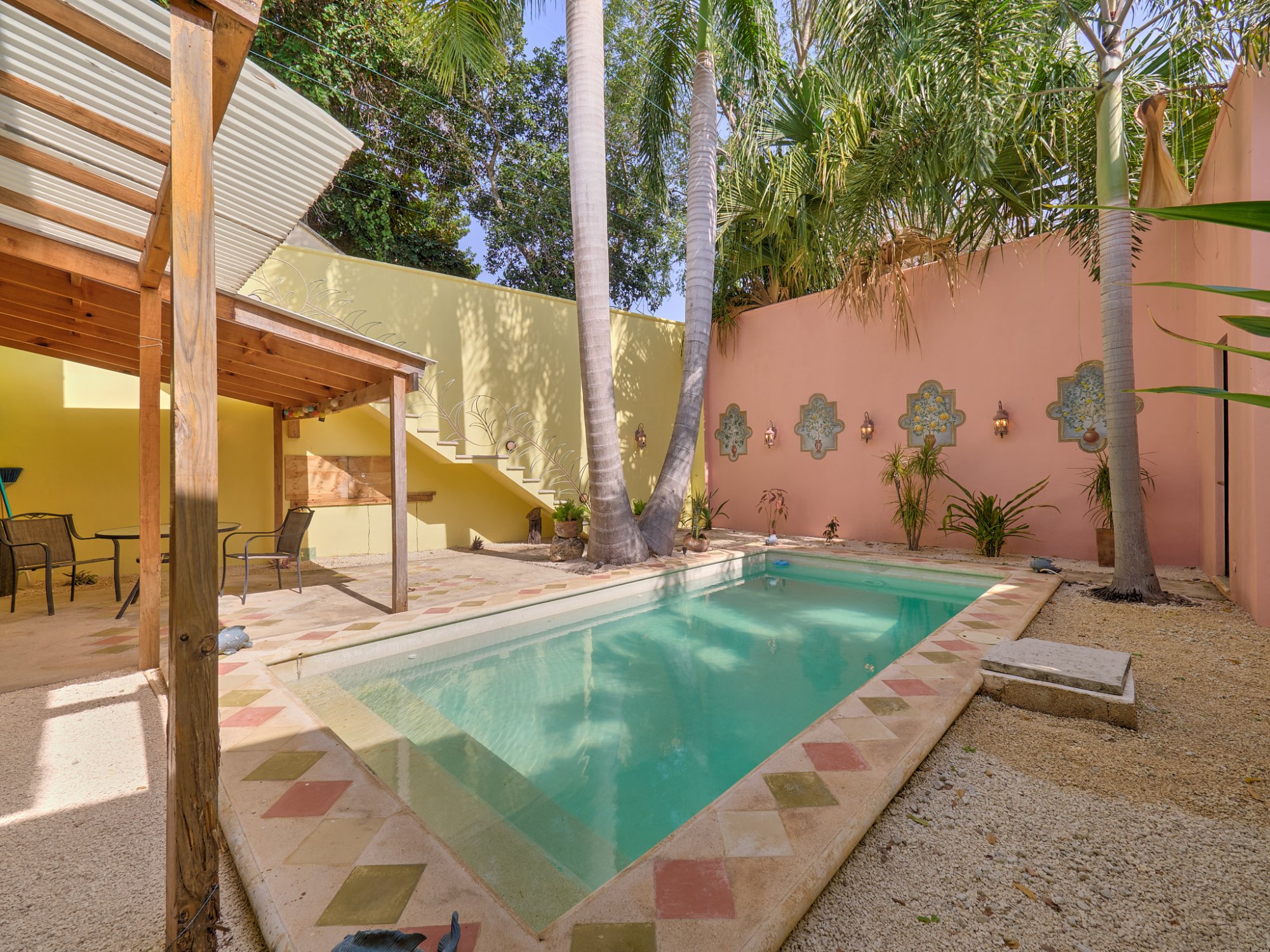Magnificent home in Centro you must see. This beautiful home has off street parking, which is so important to have in the downtown area. There is an entrance with garden area off the garage. just past that is a huge living dining room area. Magnificent for entertaining. The are two bedrooms with their own bathrooms, plus a half bath for guest. The kitchen area is huge and if you enjoy cooking could be perfect for you. The house comes full furnished. What is so nice is the huge feeling of openness you feel in this home. The lot is 10 by 30. Off the back is a nice garden area with a nice size pool. But wait, there is more, on the roof is a fabulous rooftop terrace for entertaining or sipping a glass of wine under the stars. this home is so unique in so many ways that to apricate you need to see for yourself. Call and let me give you a private tour of this one-of-a-kind home here in Merida.