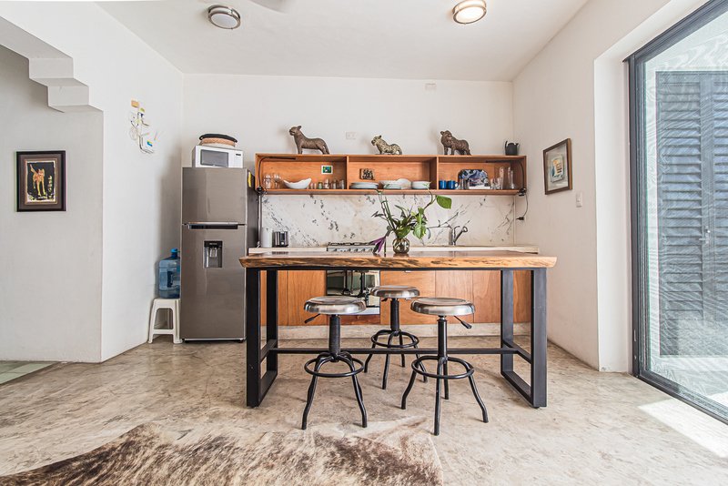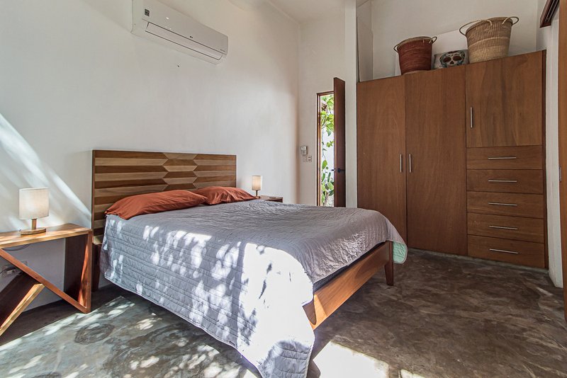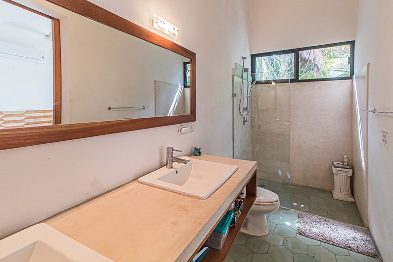 Casa Las Amigas accommodates two generously sized bedrooms, ensuring privacy and comfort to the homeowners. The ground floor hosts a master suite with built-in closet, full bath, and a private landscaped garden, promising a peaceful retreat.