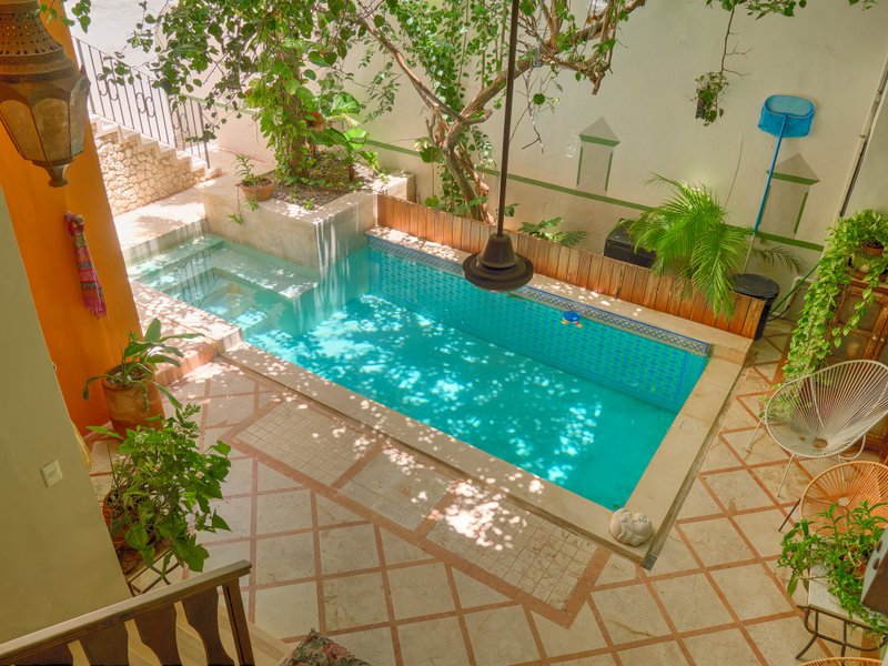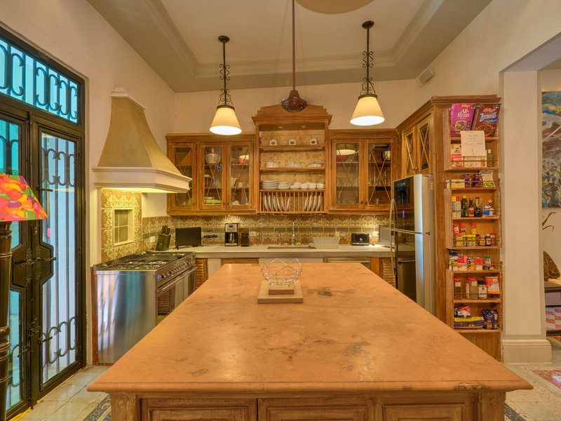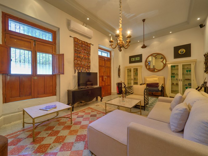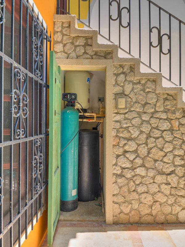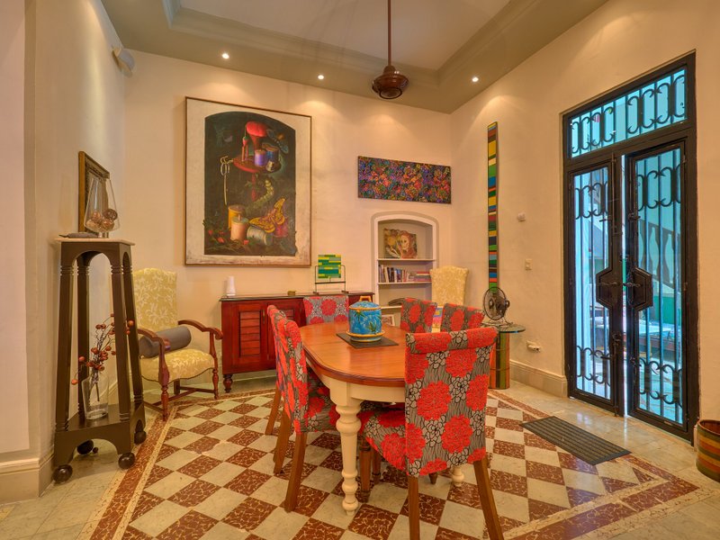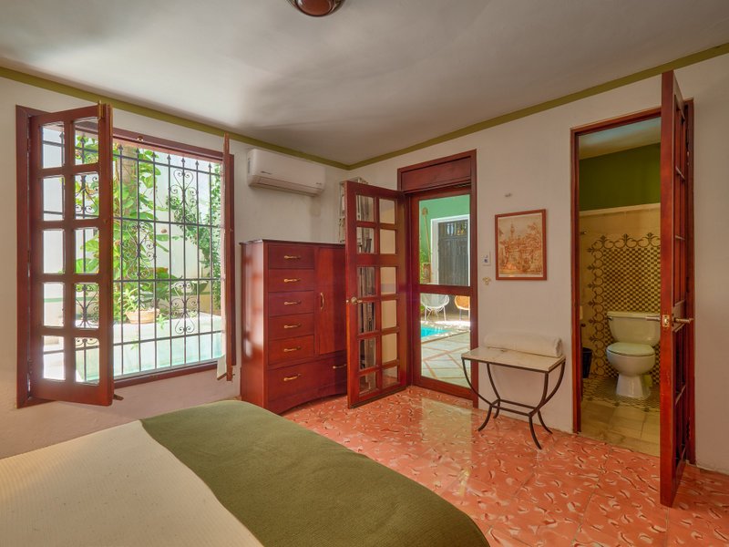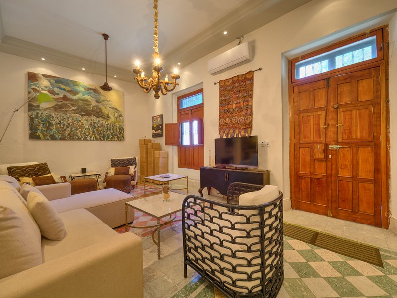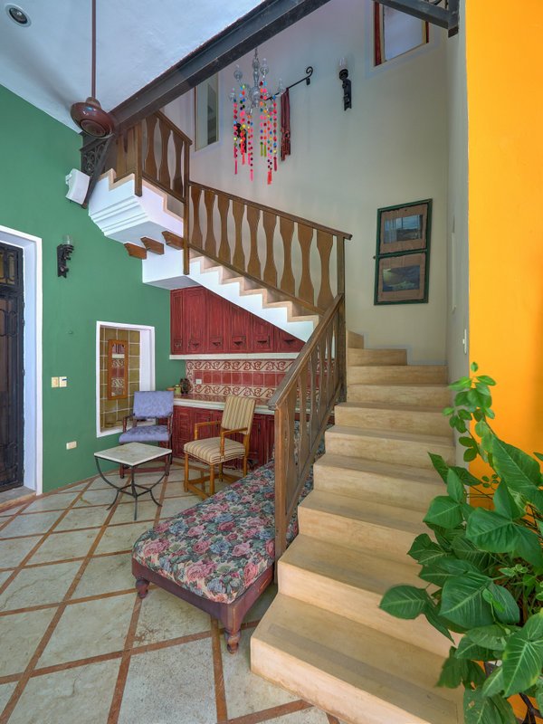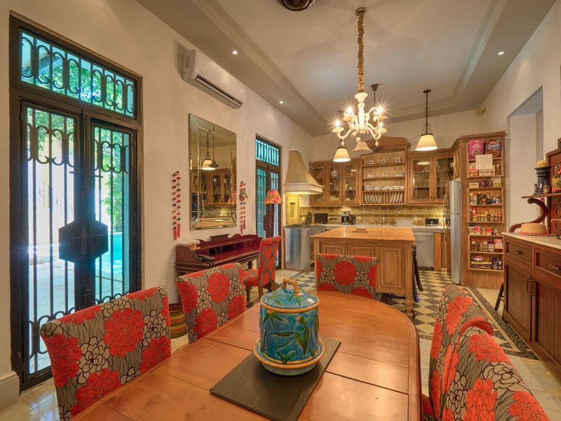 The property features air conditioners and ceiling fans in every room, a built-in sound system, a cohesive colonial-style facade, high beamed ceilings, vibrant pasta tiles which are a part of Merida's history, and solid wood doors and windows crafted from premium cedar wood. Additionally, the home is fitted with a water pressure system, and all legal documentation is current, with Fideicomiso options available.